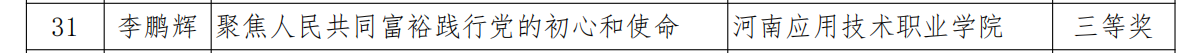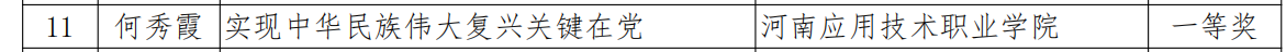 近日,河南省教育厅办公室下发了《关于公布全省高校思想政治理论课示范“金课”评审结果的通知》(教办思政〔2022〕399号),公布了2022年河南省高校思想政治理论课示范“金课”活动评审结果,我校思政课教师荣获佳绩。其中,何秀霞、张芬霞获一等奖,李鹏辉获三等奖。