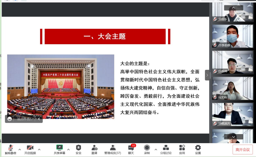 为进一步推动党的二十大精神入脑入心、落地见效,12月16日,校党委委员、副校长薄新党以《奋进新征程,扬帆再启航》为主题,在办公楼516党员活动室为建筑工程学院学生预备党员带来了一堂精彩而生动的云端专题思政课。