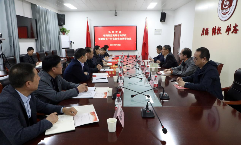 瞿鹏结合朝阳师范高等专科学校办学优势,重点从土地面积、建筑面积、设备仪器、师资力量、图书资源等方面介绍了该校举办本科层次教育的筹备情况,希望学习借鉴我校人才培养、专业建设、产教融合等方面的成功经验,加强两校沟通交流,共谋发展。