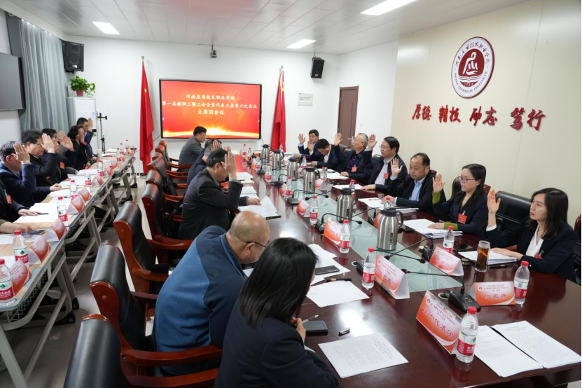 在庄严的国际歌声中,我校第一届教职工暨工会会员代表大会第六次会议圆满闭幕。