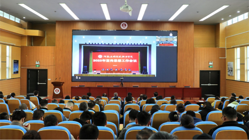 4月4日下午,我校2023年宣传思想工作会议在郑州、开封两校区同步召开。校领导班子全体成员出席会议,全体教职员工参加会议。会议由校长薄新党主持。