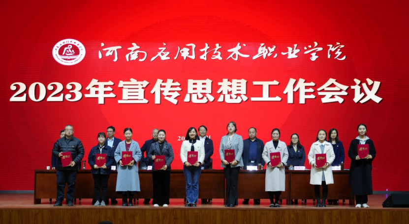 大会在庄严的国歌中拉开帷幕。副校长陈君丽宣读了《中共河南应用技术职业学院委员会关于表彰2022年度“宣传工作先进个人”及“优秀通讯员”的决定》,校领导为获奖个人颁奖。