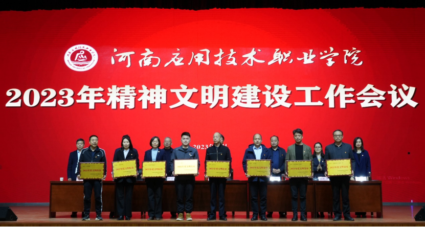 会上,副校长魏新华宣读了我校《关于表彰2022年度“文明处室”“文明院(部)”“文明职工”“文明网民”“优秀志愿者”“文明食堂”的决定》《关于表彰2022年省级文明校园标兵建设工作先进集体、先进个人的决定》,校领导集体为“文明处室”“文明院(部)”进行现场颁奖。