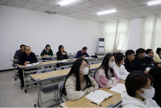 在听课环节,闫俊山、薄新党、朱东方等陪同邵发军等专家深入课堂,随机听取了马克思主义学院教师马丽讲授的“毛泽东思想和中国特色社会主义理论体系概论”、苏玲敏讲授的“形势与政策”的课程内容。听课结束后,专家与授课教师进行交流反馈,对两位教师在教学设计、关注学情、学生互动、课堂氛围等方面给予了充分肯定。