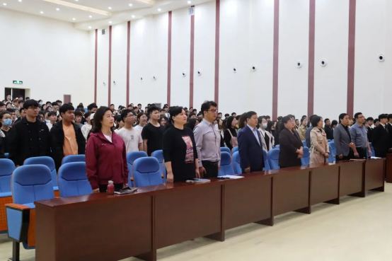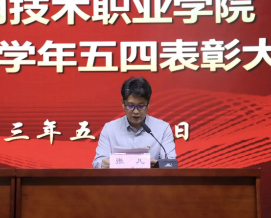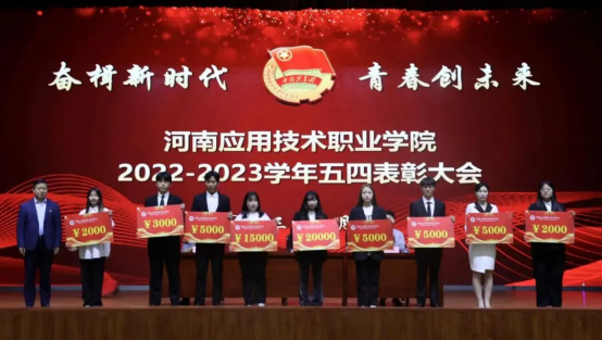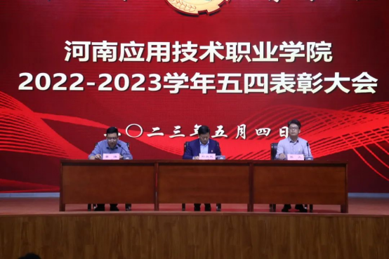 为深入学习贯彻习近平新时代中国特色社会主义思想主题教育,5月4日下午,我校“奋楫新时代,青春创未来”2022-2023学年五四表彰大会暨2023年度新团员入团宣誓仪式在郑州校区学生活动中心举行。副校长刘振民出席大会,相关职能部门负责人,各院部党总支书记、副书记、团总支书记及学生代表参会,大会由校团委副书记娄焕主持。