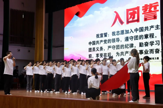 会上,来自校团委广播站的青年学生为现场师生带来了主题朗诵节目《我们的青年时代》,唱响了应院青年坚定信念、堪当大任的豪情壮志和青春朝气。随后,100多名2023年度新共青团员代表举行入团宣誓仪式。他们排列整齐、面向团旗,以铿锵有力的声音庄严宣誓,正式成为了光荣的共青团员。