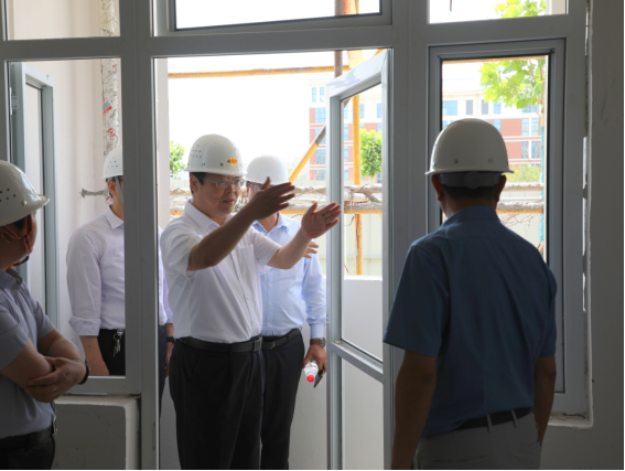 闫俊山一行先后来到开封校区(南院)青年教师公寓项目、开封校区(北院)三号学生宿舍楼项目施工现场,实地察看项目进展情况,并就项目总体规划、工程风险防控、安全生产管理、后期装修装饰等方面情况进行仔细询问。