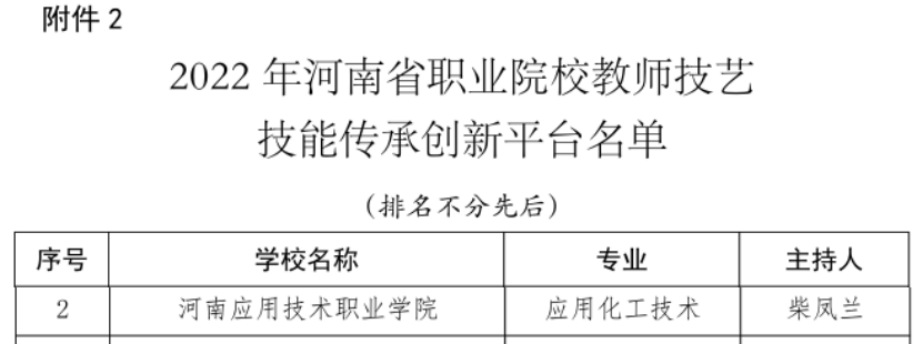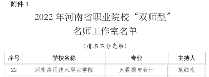 近日,河南省教育厅发布了《关于公布2022年河南省职业院校“双师型”名师工作室和教师技艺技能传承创新平台名单的通知》(教办职成〔2023〕176号),我校教师范红梅主持的大数据与会计专业“双师型”名师工作室、教师柴凤兰主持的应用化工技术专业教师技艺技能传承创新平台分别获批立项。至此,我校共有省级“双师型”名师工作室3个,省级教师技艺技能传承创新平台3个。