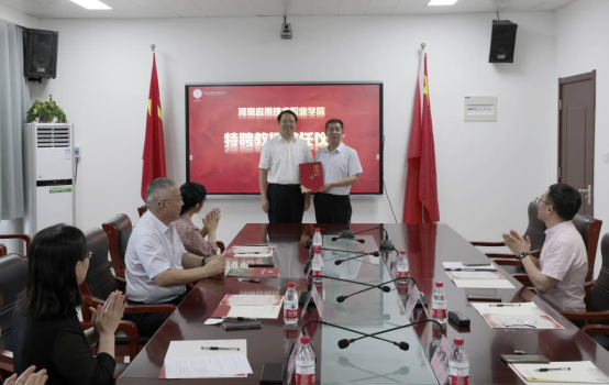 会上,闫俊山为蒋占峰颁发特聘教授证书。陈君丽和蒋占峰代表双方签订了结对共建协议。