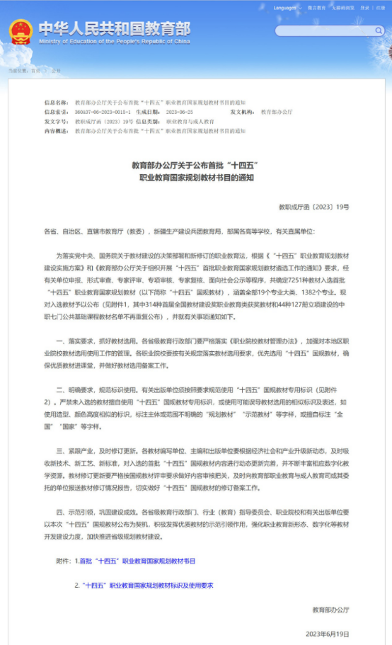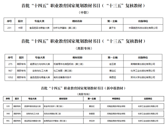 近日,教育部发布《教育部办公厅关于公布首批“十四五”职业教育国家规划教材书目的通知》(教职成厅函〔2023〕19号),我校《安全评价技术(第三版)》等7部教材入选首批“十四五”职业教育国家规划教材名单,其中新申报教材3部,“十三五”复核教材4部。