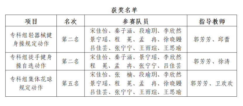 此次获奖有力展示了我校“以赛促教、以赛促学、以赛促改、以赛促建”的体育教学成果,展现了我校学子团结协作、奋发向上、敢于拼搏的精神面貌,学校将珍惜荣誉,再接再厉,为河南体育事业的蓬勃发展做出自身贡献。(责任编辑:吕娇楠)