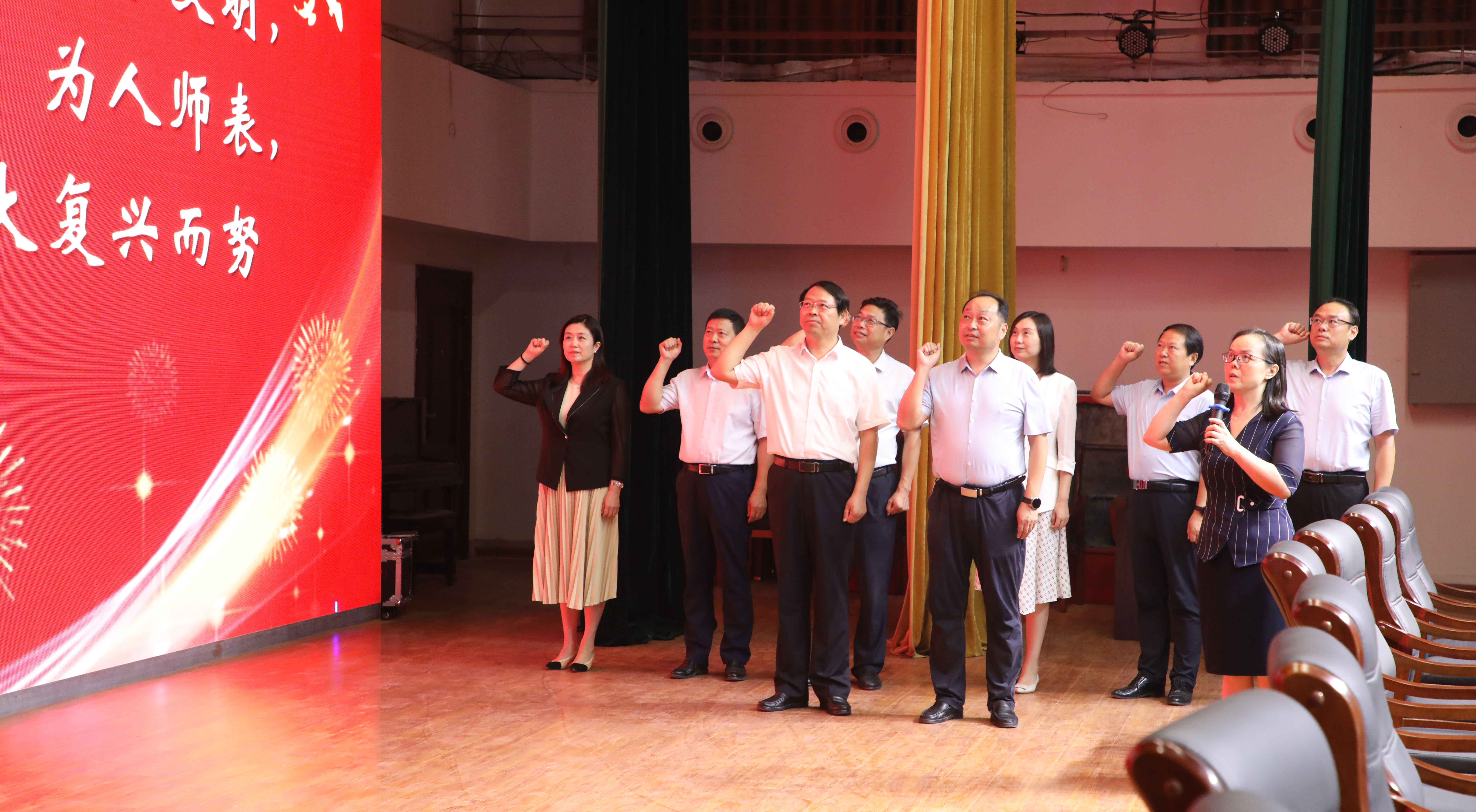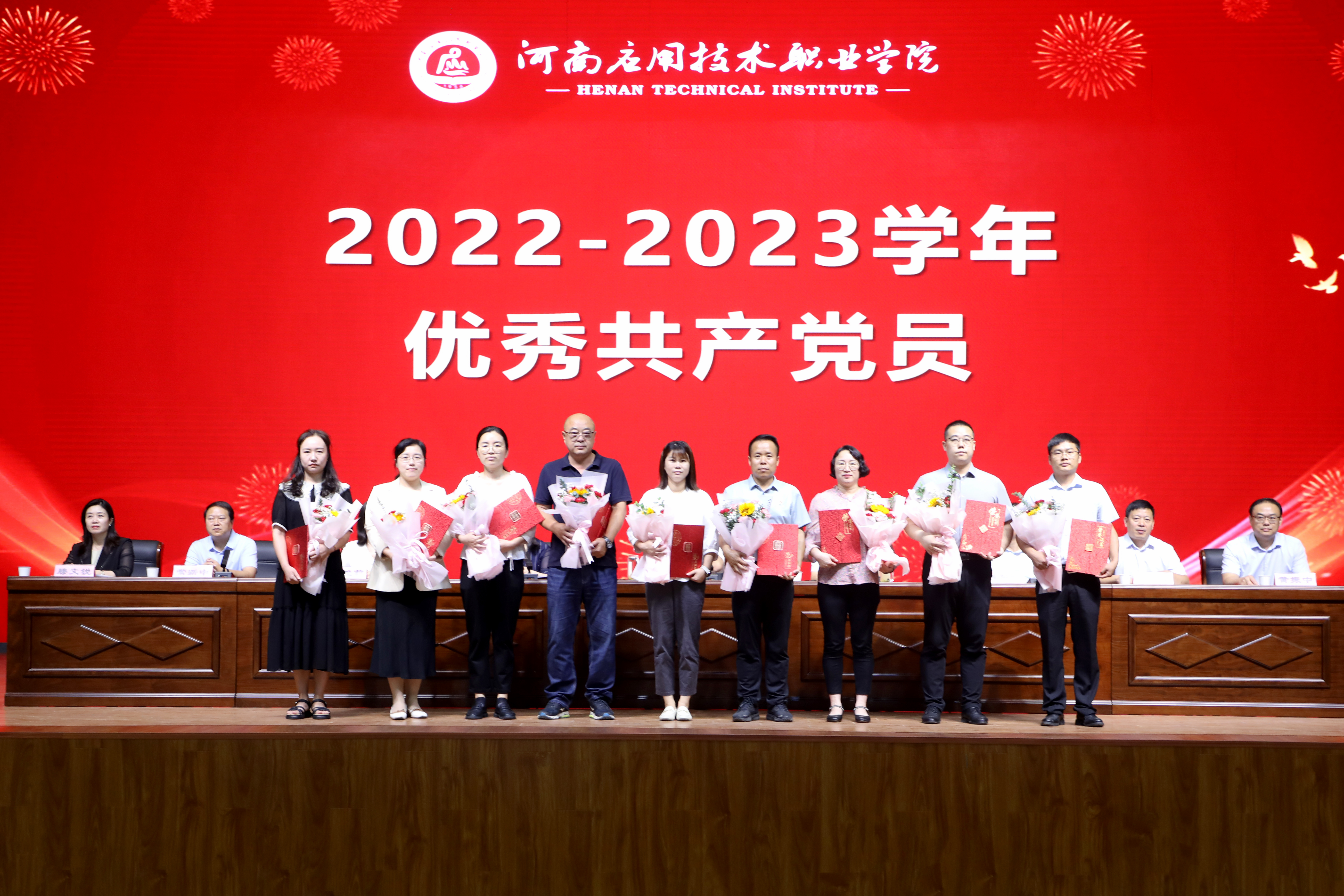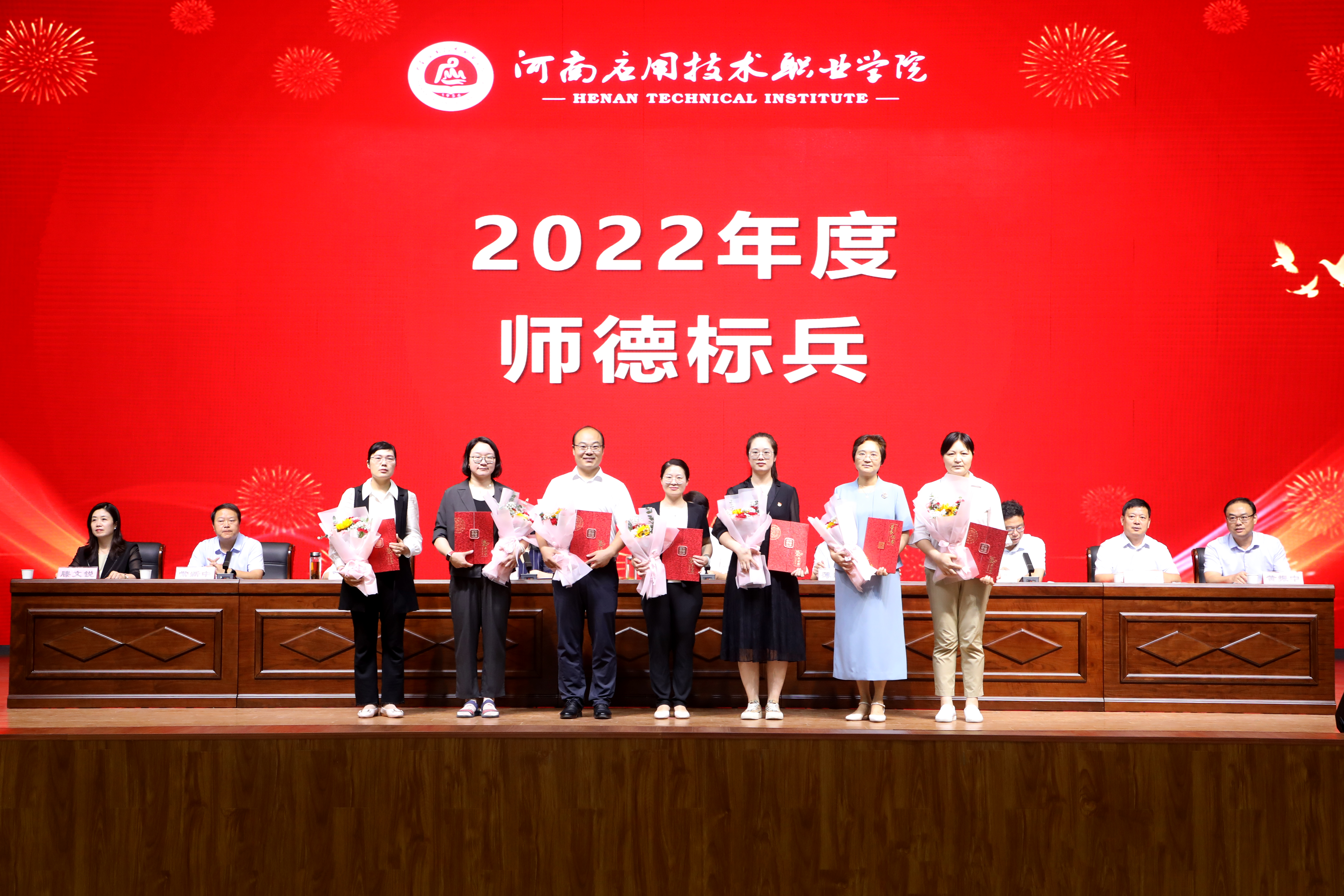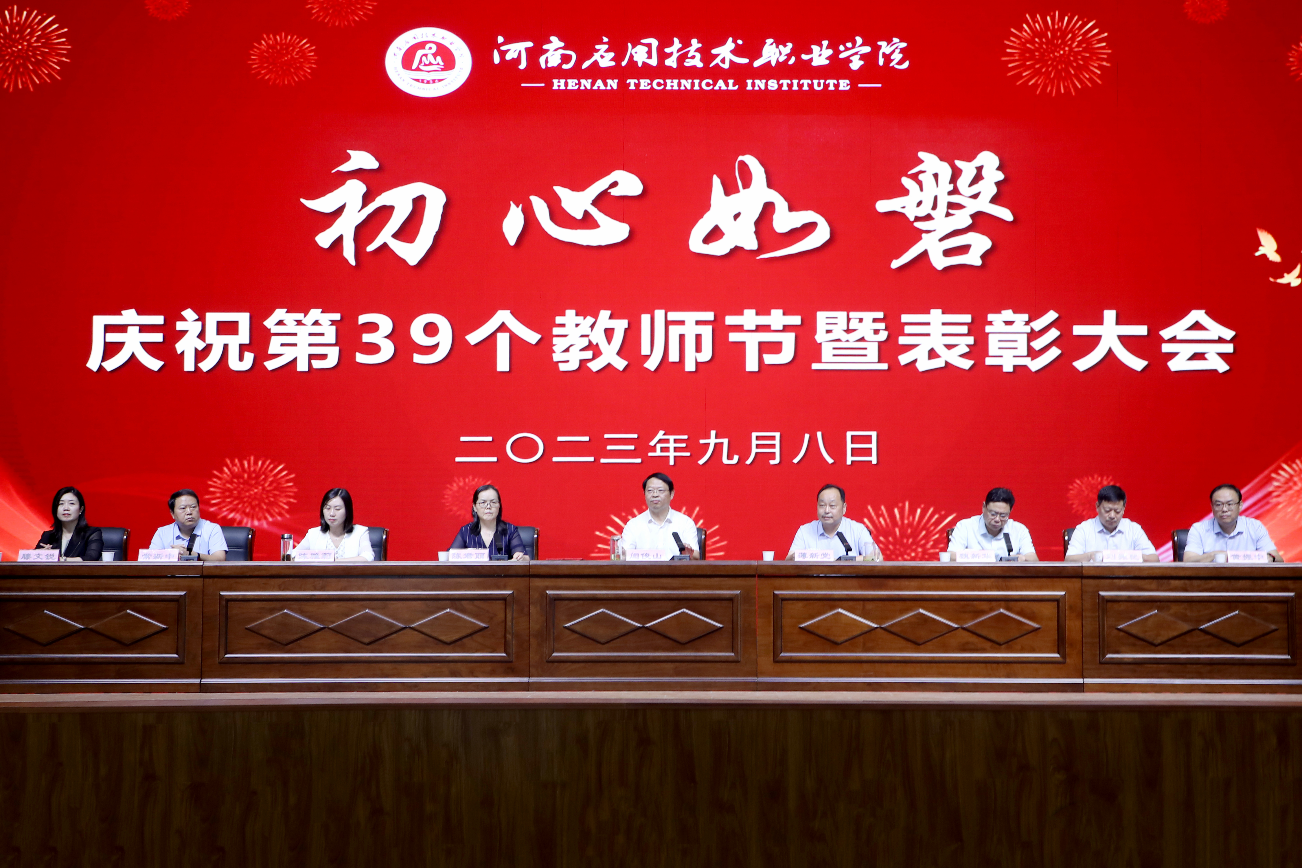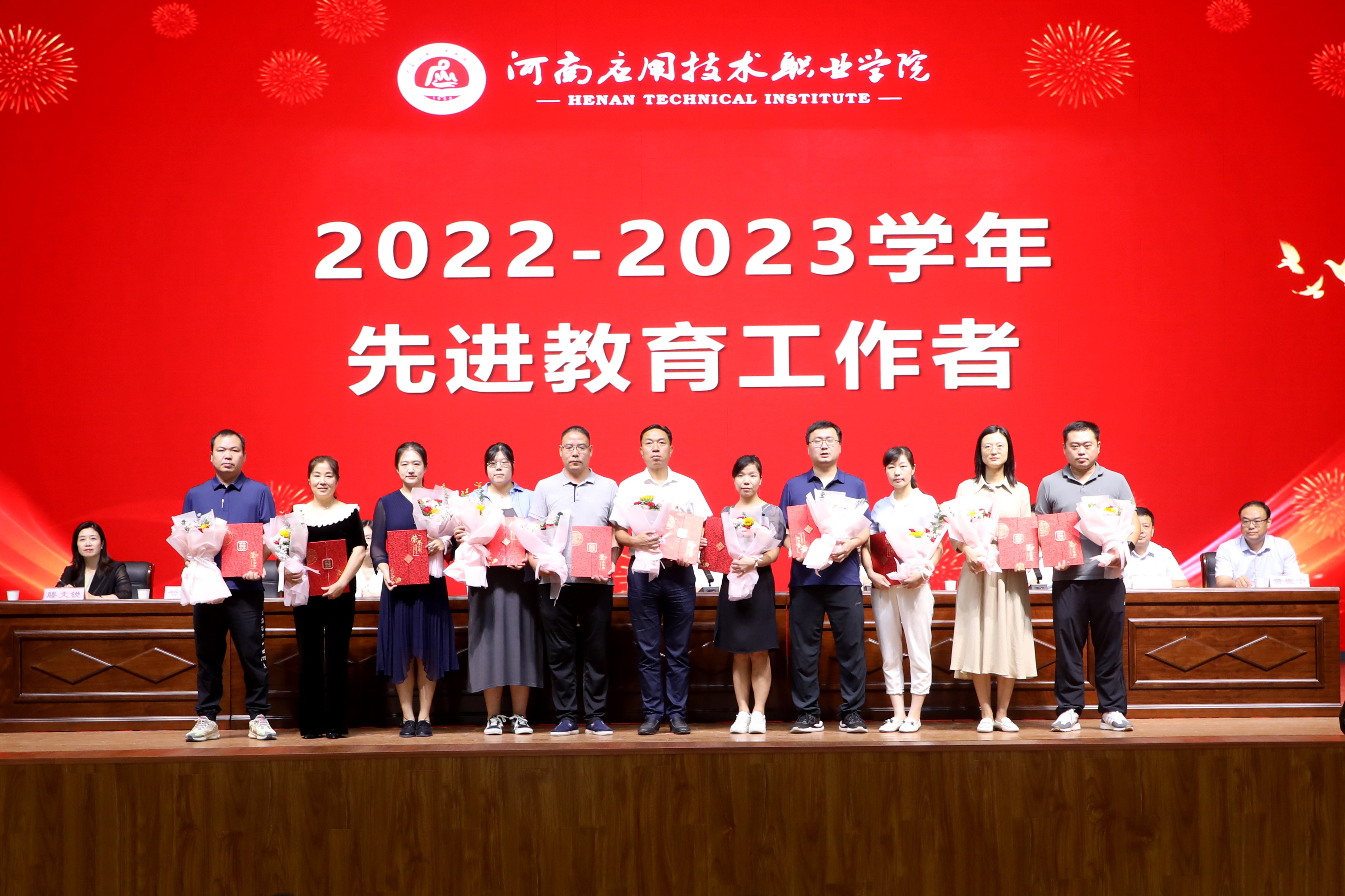 大会在庄严的国歌声中拉开帷幕。会上,副校长陈君丽带领参会人员重温了教师誓词。副校长魏新华宣读了学校《关于表彰光荣从教三十年教师的决定》《关于表彰2022-2023学年先进集体和个人的决定》;副校长常新中宣读了学校《关于表彰先进基层党组织、优秀共产党员和优秀党务工作者的决定》《关于公布河南应用技术职业学院“出彩河南人”2023年最美教师名单的通知》《关于表彰“2022年度师德标兵”的决定》《关于对2022-2023学年获得厅级以上荣誉的先进集体和先进个人进行通报表彰的决定》。
