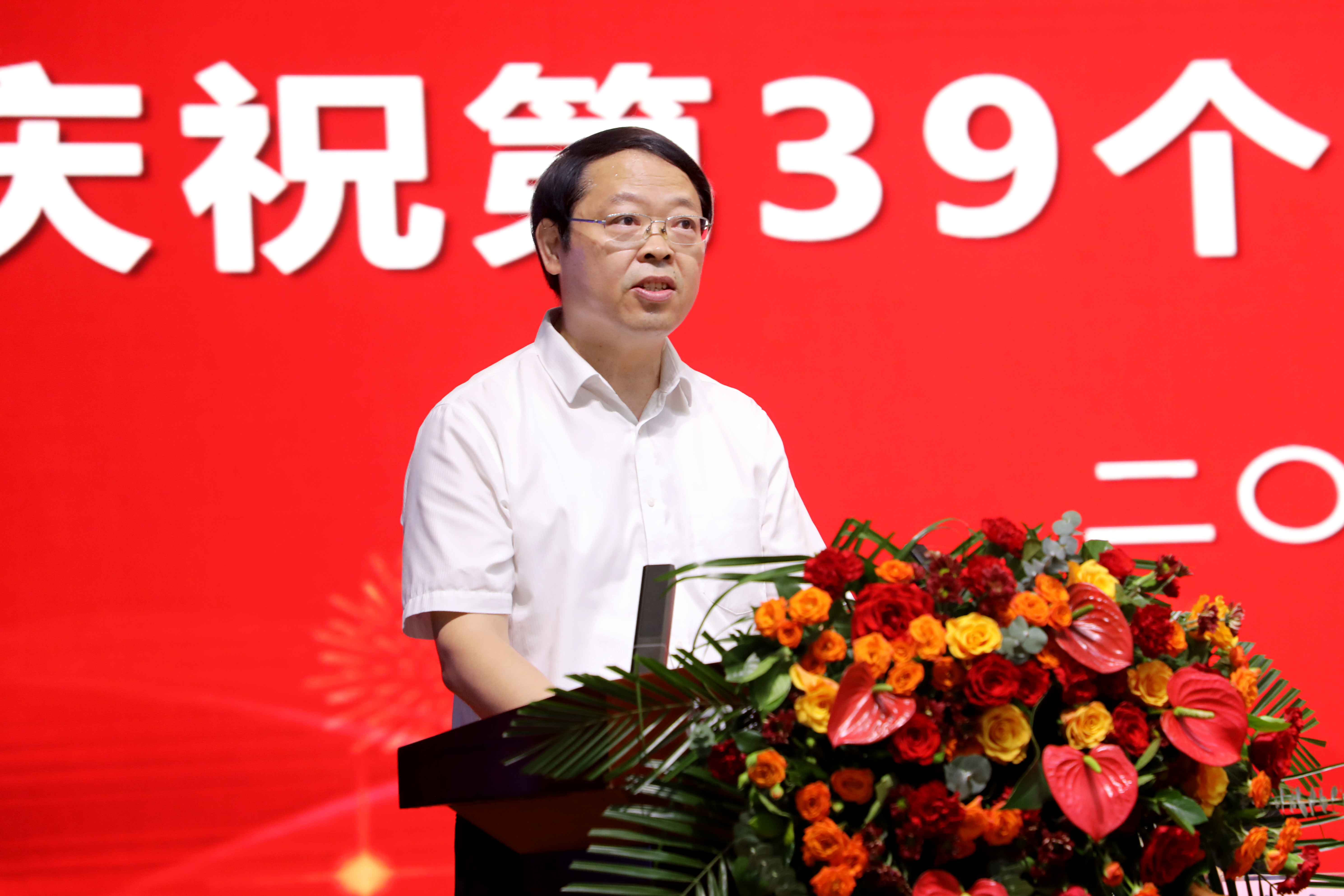党委书记闫俊山发表讲话。他指出,百年大计,教育为本;教育大计,教师为本。一年来,学校广大教职员工始终牢记为党育人、为国育才初心使命,深入学习贯彻习近平总书记关于教育工作的重要论述精神,贯彻党的教育方针,落实立德树人根本任务,不断强化内涵建设,提升人才培养质量,学校办学实力和社会影响力持续提升。