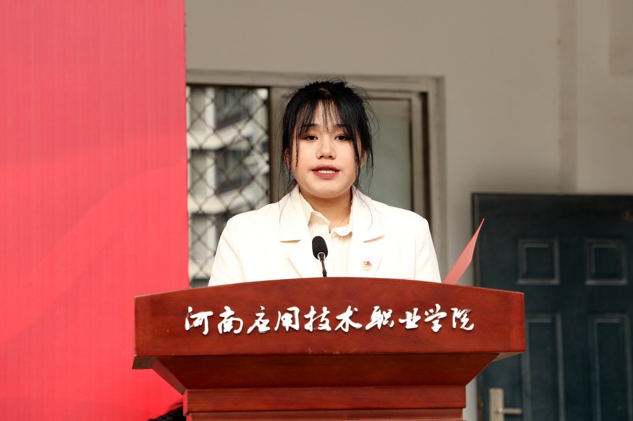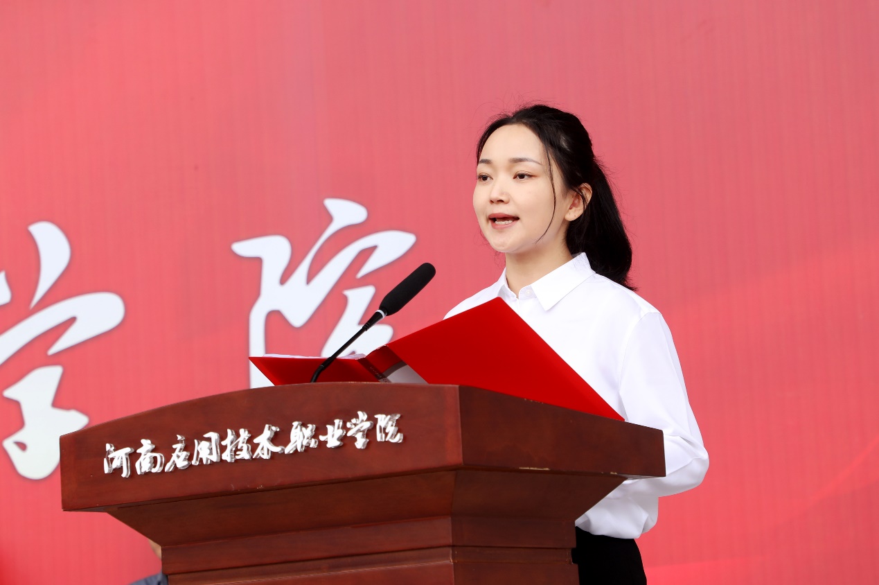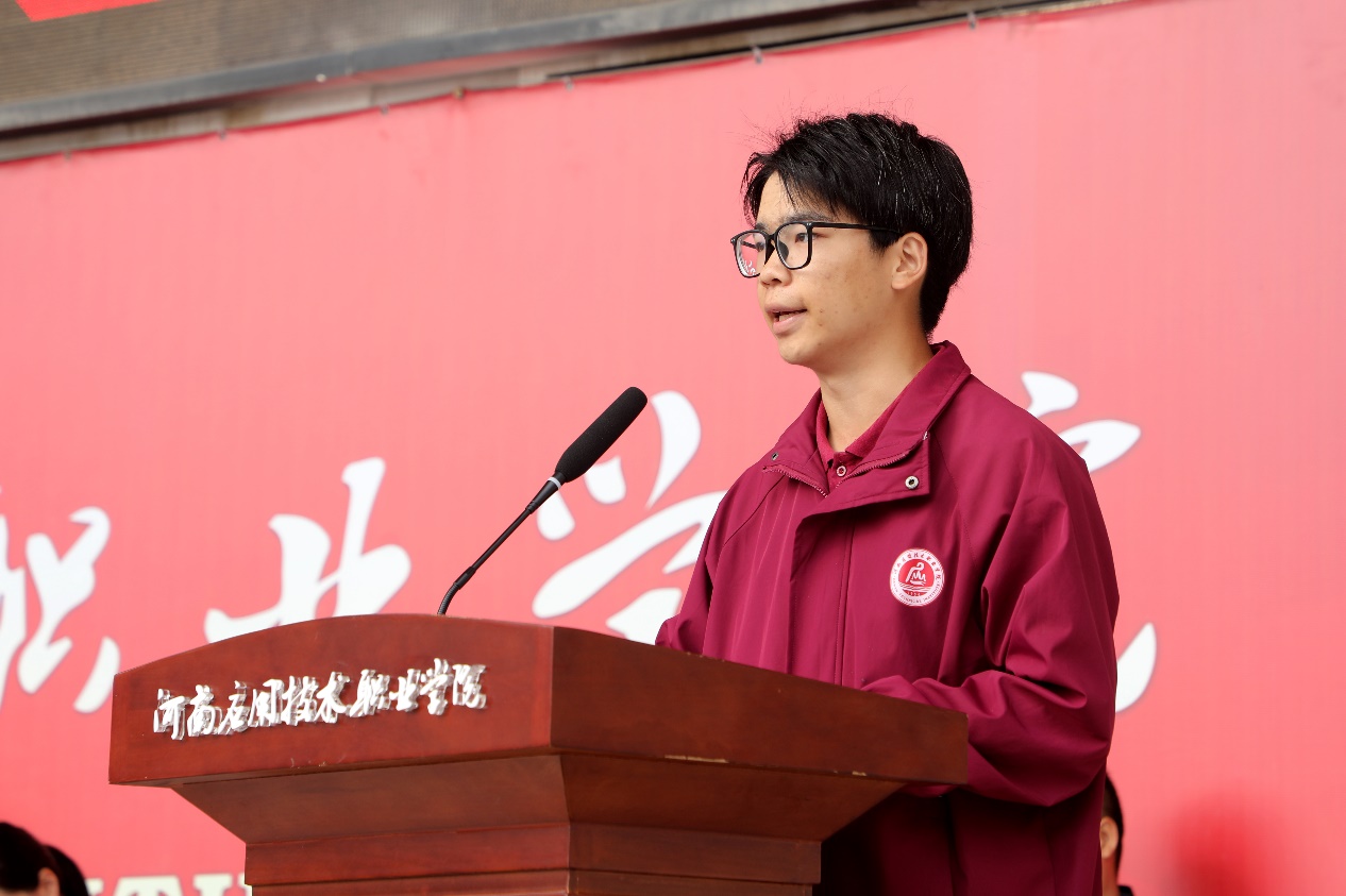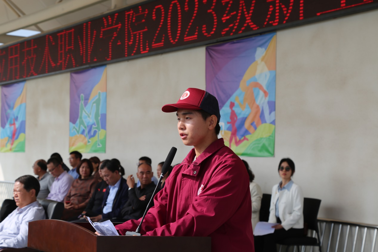 开学典礼上,老生代表、新生代表及校友代表、教师代表先后发言。学生代表表达了对学校领导、老师及教官的真诚感谢,表示会努力提升自身素质,勤学善思,在应院找到新的方向,创造的新佳绩。并号召同学们要刻苦锤炼技术技能,提高职业素养,在应院成就更好的自己。2008级毕业生吕延飞作为校友代表寄语2023级新生要做一个有坚定理想信念,有明确奋斗目标的人;要做一个正能量、勇气、自律且强大的人;要做一个身体健康、阳光开朗积极向上的人。教师代表在祝贺2023级新生圆梦大学、逐梦应院的同时也建议他们要立凌云之志、修浩瀚之学、尽洪荒之力。