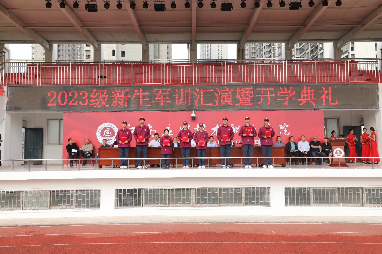 军训汇演后,学校对军训期间涌现的先进集体及个人进行了表彰。副校长陈君丽、纪委书记陈雅莉宣读了表彰决定,校领导为2023级新生“军训标兵”、军训“优秀教官”、“标兵连队”代表颁发荣誉证书,激励他们以青春续写家国情怀,以热血书写奋进华章。