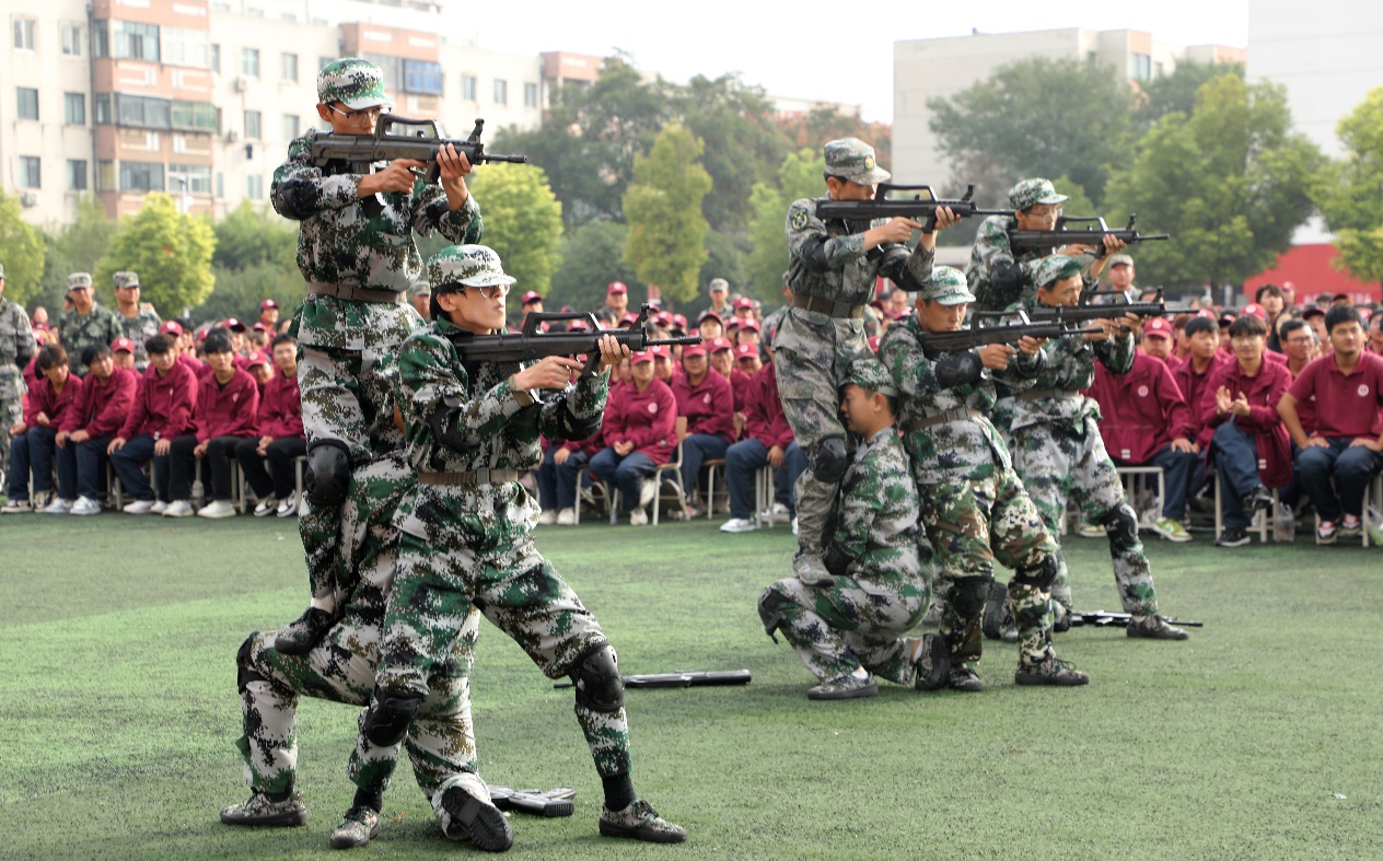 青春集结,沙场点兵。旗语表演方队、格斗匕首操表演方队、战术表演方队、擒敌拳表演方队、格斗操表演方队等特色方队通过队形变换、擒拿格斗等表演展示了当代大学生团结协作、顽强拼搏,敢于挑战的健康向上的风貌,以及爱党、爱国、爱校的浓厚情怀。