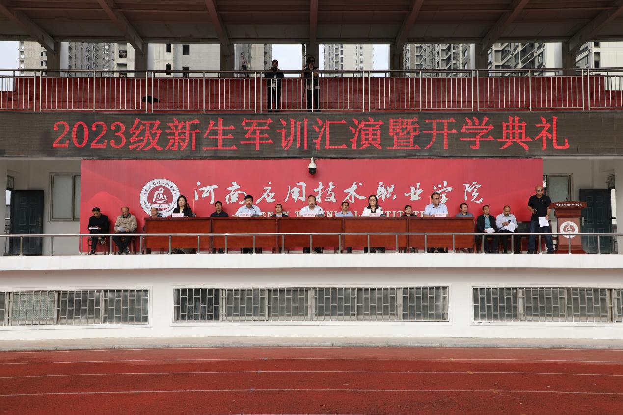 雨洗千叶秋色醉,情洒应院露华新。9月28日,我校2023级新生军训汇演暨开学典礼在郑州、开封两校区运动场隆重举行。党委书记闫俊山,校长薄新党及在校领导班子成员、党委委员出席典礼,各二级院部及党政部门负责人、新生辅导员、2023级全体新生参加典礼。典礼分别由副校长魏新华、刘振民主持。
