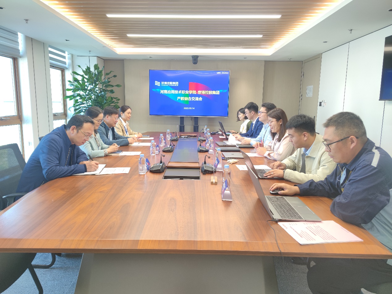 为进一步推进和落实8月4日学校党委书记闫俊山“访企拓岗促就业”专项行动中对京博集团合作的具体指示,10月14日,陈君丽一行与山东京博控股集团校企N1N融创基地联席会议综合管理负责人王叶召、学训管理负责人张荣川、中级培训管理师贵来全、初级合作管理师郭文倩,山东京博石油化工有限公司人力资源管理部人力资源主管崔俊杰,海南贝欧亿科技有限公司人力资源部负责人付朋召开了校企产教融合交流会。会上,王叶召代表公司详细介绍了校企N1N融创基地建设情况,并希望双方充分考虑合作条件,确定各阶段合作目标,设计合作项目,拿出可行实施方案,以具体合作项目推进产教融合工作。