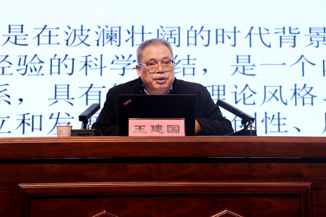 报告会上,王建国以“习近平法治思想的形成逻辑和理论特色”为题,从习近平法治思想的核心内容和理论体系、习近平法治思想形成发展的时代背景、实践逻辑、理论逻辑和历史逻辑、习近平法治思想的鲜明特色等方面对习近平法治思想进行了全面、详实和系统的阐述。