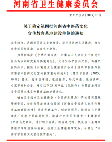 近日,河南省卫生健康委员会公布了第四批“河南省中医药文化宣传教育基地建设单位”,我校中医药博物馆名列其中。这是继8月份获评“河南省社会科学普及基地”后再获省级殊荣。