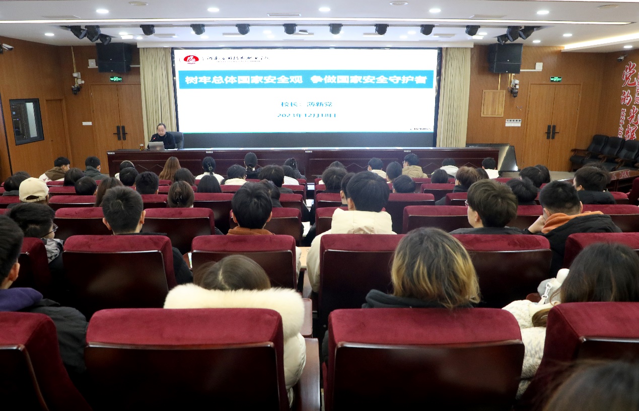 为深入学习贯彻党的二十大精神,全面落实《关于新时代加强和改进思想政治工作的意见》,坚定不移贯彻落实总体国家安全观,引导我校学生提升国家安全和生命安全意识,夯实以新安全格局保障新发展格局的社会基础。12月18日,校长薄新党在思政大讲堂为化学工程学院2022级应用化工技术专业学生讲授了题为《树牢总体国家安全观 争做国家安全守护者》思政课。