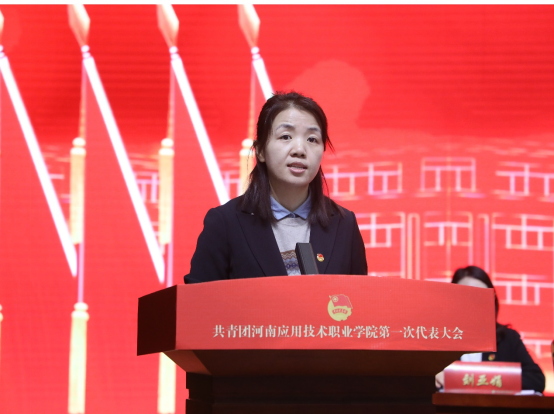 团省委高校部部长刘淑丽代表团省委向大会的召开表示热烈的祝贺,对近年来河南应用技术职业学院共青团取得的成绩给予充分肯定。她希望广大团员青年能够坚守信仰,筑牢理想信念;强化责任担当,勇做时代先锋;坚持学习进取,提升综合素质;希望河南应用技术职业学院能够加强团组织建设,有效服务青年,弘扬团组织优良传统,凝聚团员青年力量,奋力谱写新时代共青团和青年工作的壮丽青春之歌。