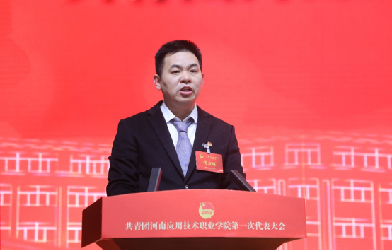 校团委书记李海涛代表共青团河南应用技术职业学院委员会作题为《高举团旗跟党走 踔厉奋发新征程为助力建设高水平高职学校贡献青春力量》的报告。报告总结回顾了自2015年11月以来共青团的工作成绩,展望了在新时代、新征程上共青团工作面对的新形势、新要求,提出了未来五年的工作重点和工作目标:在学校党委的坚强领导下,继续深化共青团、学生组织改革,以创建一流团建为目标,坚持围绕中心,服务大局,在思想政治引领、基层组织建设、学生素质拓展、校园文化活动、学生权益维护、数字网络团建等方面,努力开创学校共青团工作新局面。