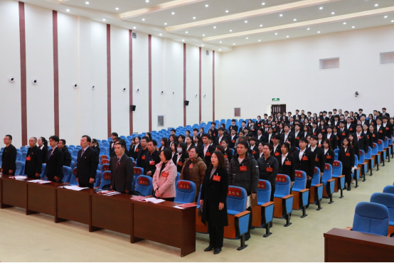 大会在庄严的国歌中拉开帷幕。本次大会主题是:高举习近平新时代中国特色社会主义思想伟大旗帜,全面贯彻落实党的二十大精神,深入学习贯彻团十九大精神,团结带领全校团员青年高举团旗跟党走,踔厉奋发新征程,为建设特色鲜明的高职院校贡献青春力量!