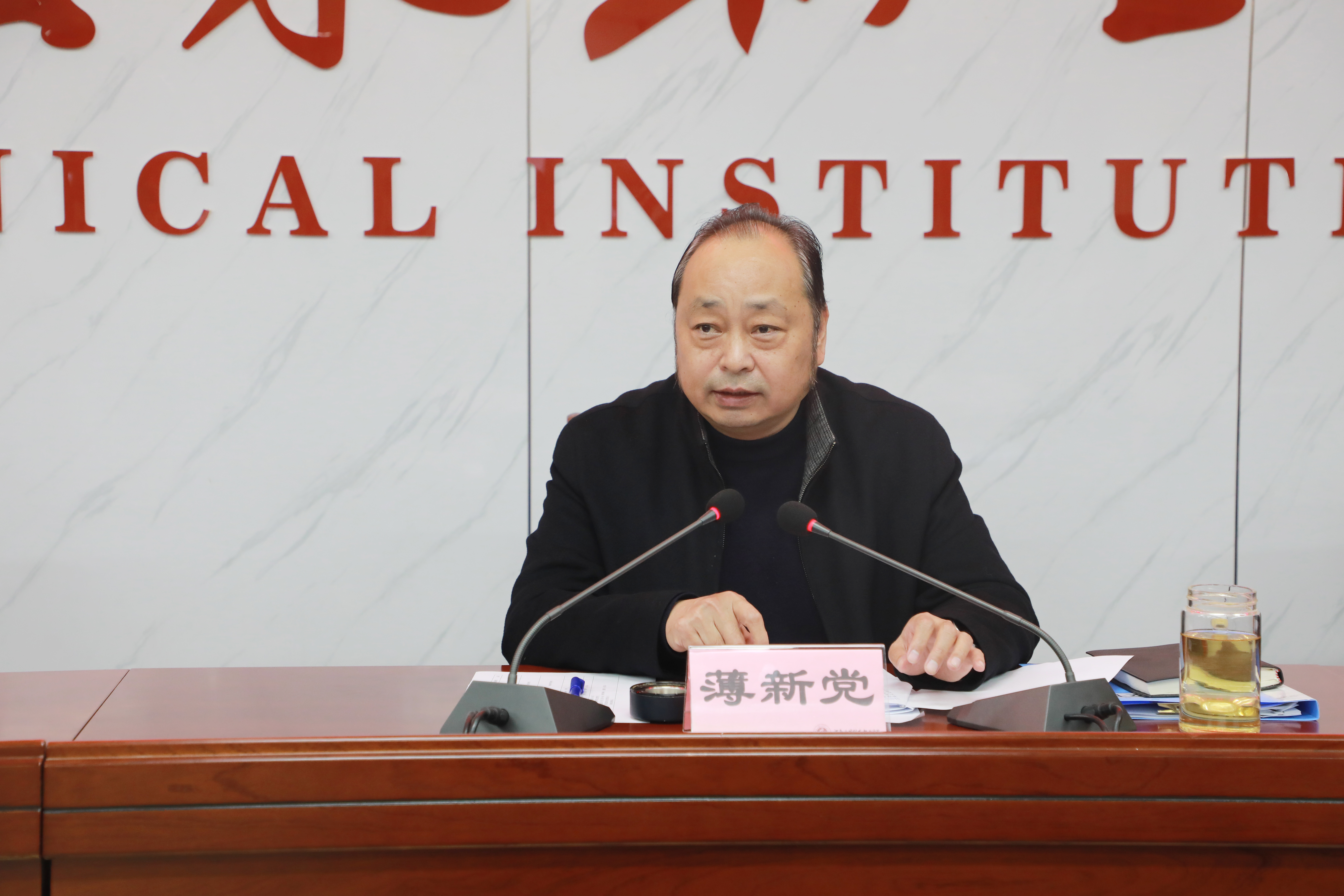 校长薄新党总结了省级“双高工程”项目建设情况和国家级“双高计划”申报工作前期开展情况,并对做好下一步工作提出了三点意见:一是提高站位,强化责任担当,党员干部要进一步增强推进“双高”建设的责任感和使命感,认清形势、鼓足干劲,示范带头、坚定信心,明确问题清单和整改清单,确保高质量完成省级“双高工程”项目绩效任务;二是主动作为,狠抓工作落实,各部门要增强和提高“走出去”的意识和能力,开放包容、借鉴创新,积极拓展工作新思路、新机制、新方法,发扬敬业奉献精神,增强攻坚克难能力,扎实推动“双高”建设和项目申报各项工作落地生效;三是理清思路,精准发力突破,各部门要认真梳理“双高”建设中的短板不足,特别是“双高计划”申报条件中的弱项、缺失项,前瞻谋划、精准发力,胜利实现 “力争立项建设中国特色高水平高职学校、确保立项建设中国特色高水平专业群”的既定奋斗目标。