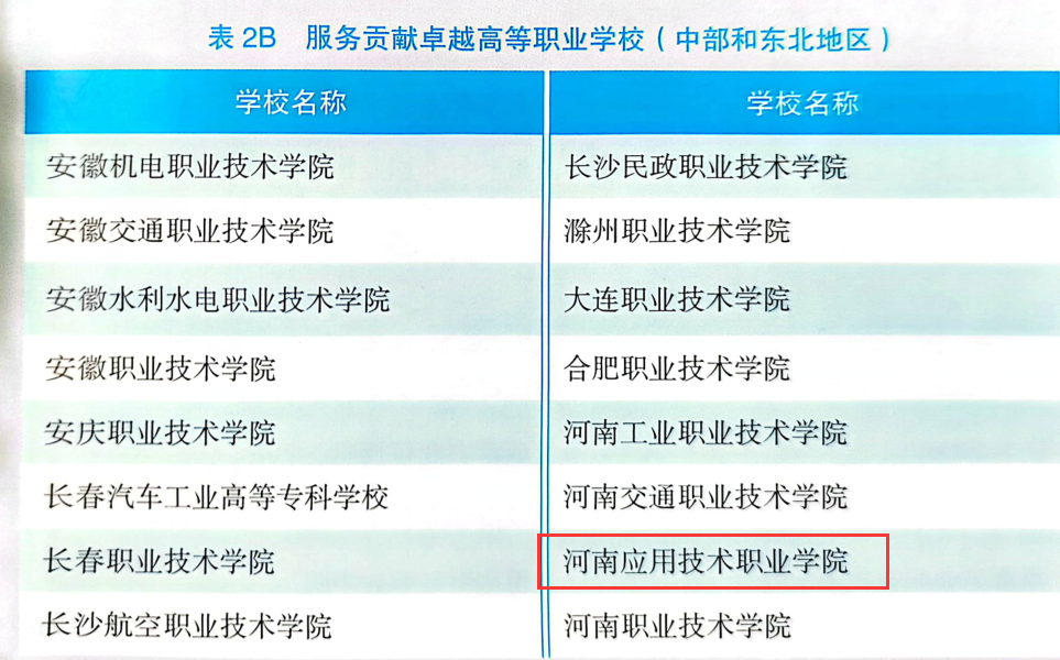 日前,由中国教育科学研究院牵头完成的《2023中国职业教育质量年度报告》在北京发布。报告从人才培养、服务贡献、产教融合、发展保障等方面,向社会全面展示各层次职业教育提高质量的举措、经验和成效。本年度报告在过往的指数研制与评选基础上进行优化,分为东部地区、中部和东北地区、西部地区,各评选出50所人才培养卓越高等职业学校、50所服务贡献卓越高等职业学校、50所产教融合卓越高等职业学校。我校成功入选中部和东北地区前50所服务贡献卓越高等职业学校榜单。