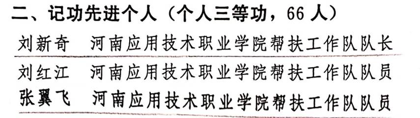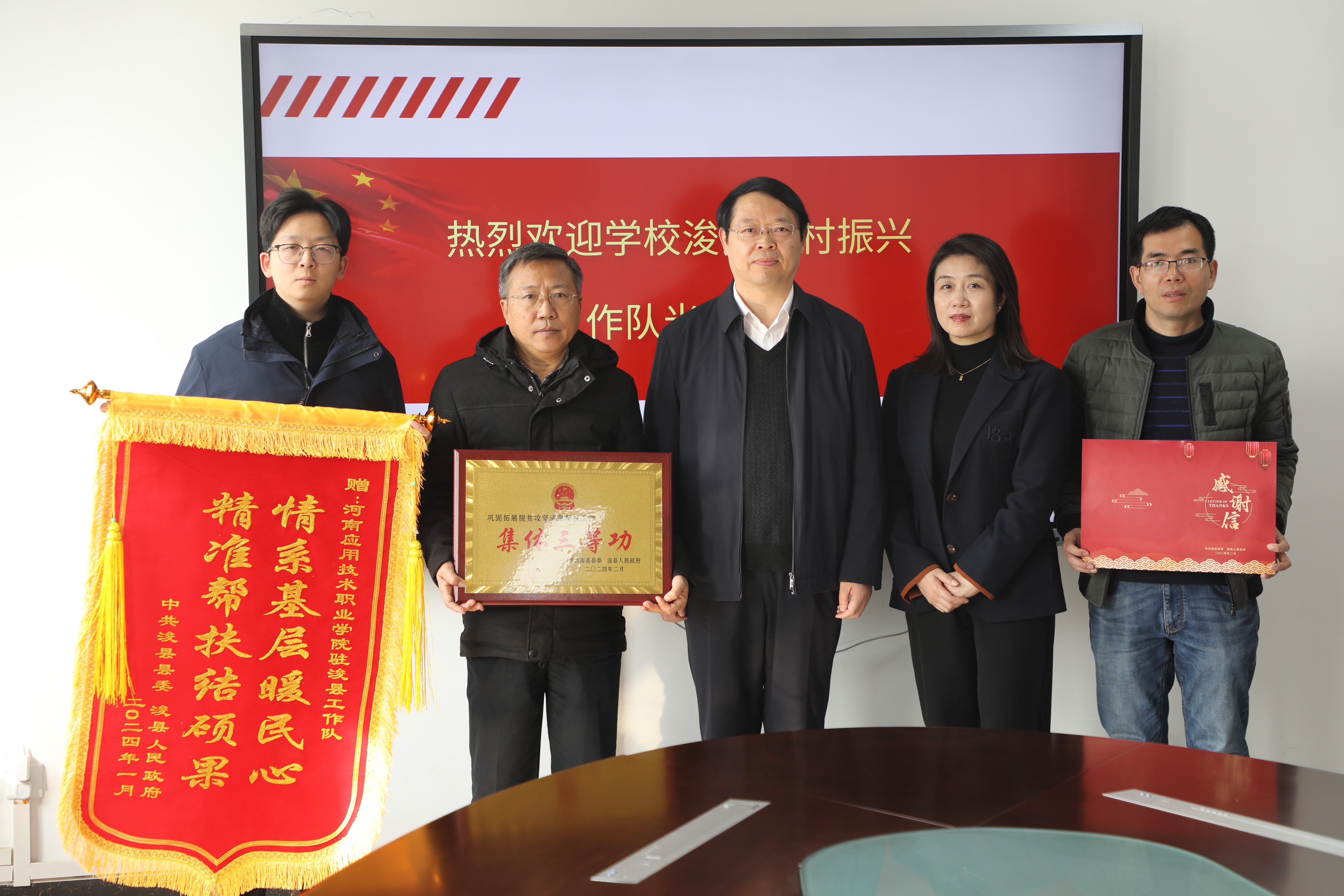 2月27日,学校选派鹤壁市浚县开展校地结对帮扶工作的三位同志刘新奇、张翼飞、刘红江,在圆满结束帮扶工作后顺利返校。鉴于我校对浚县巩固脱贫攻坚成果和乡村振兴工作中做出的突出贡献以及帮扶工作队的优秀表现,中共浚县县委、浚县人民政府授予我校集体三等功及帮扶队员个人三等功,同时向我校赠送锦旗和感谢信。我校召开座谈会,热烈欢迎载誉归来的三位同志。党委书记闫俊山参加座谈会,会议由党委委员、组织部部长滕文锐主持。