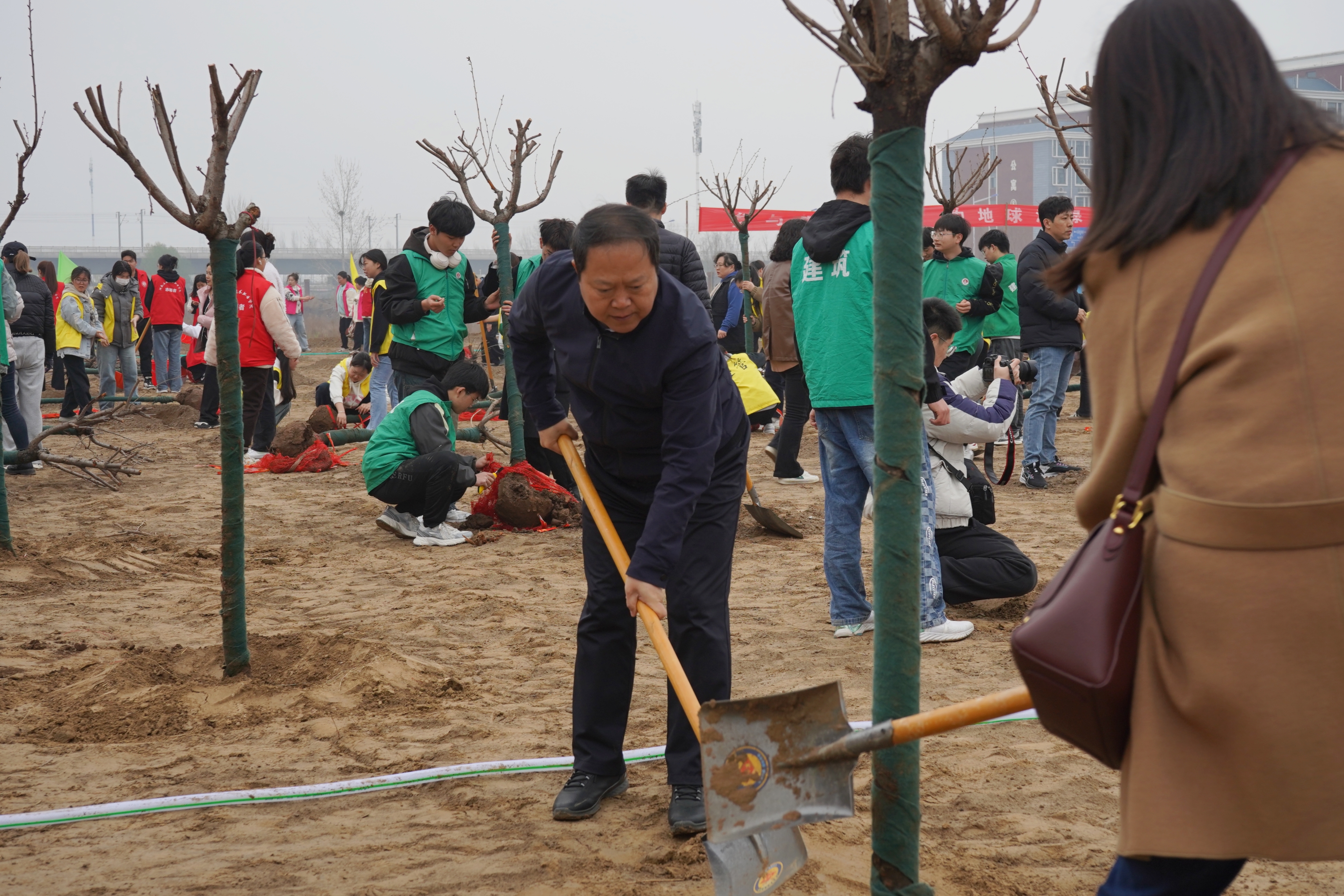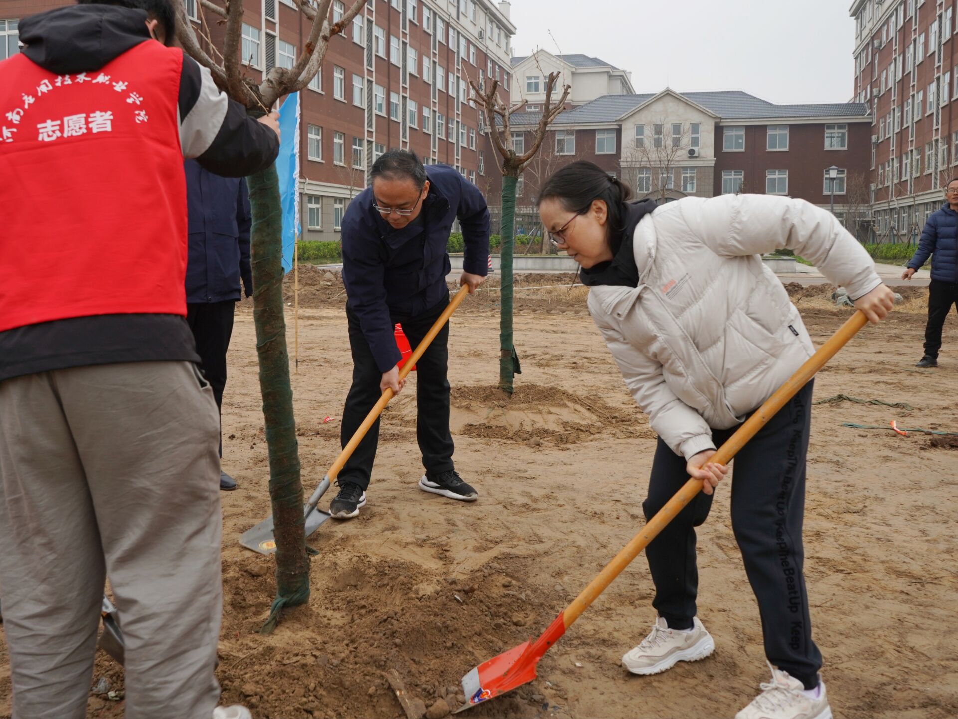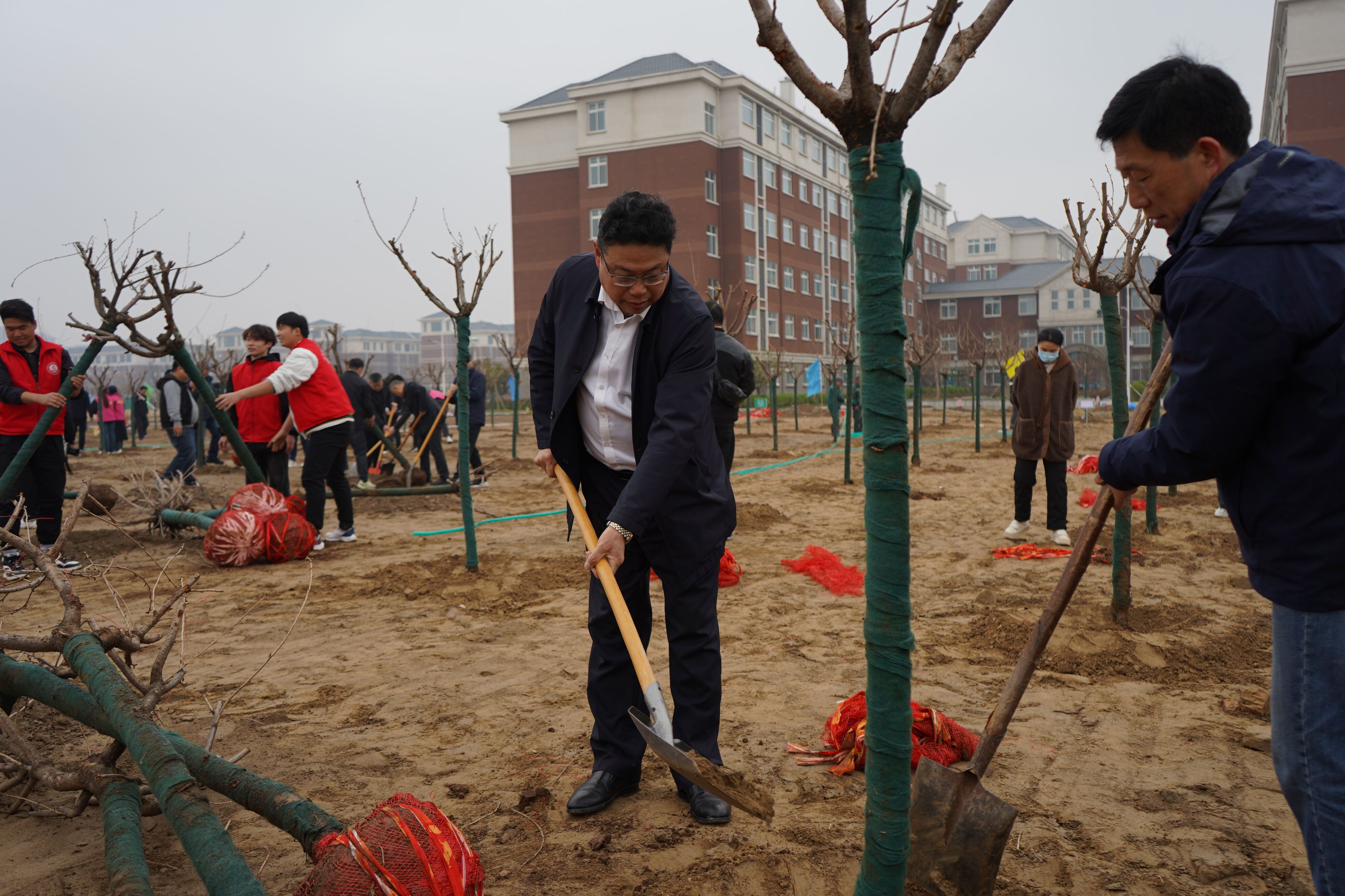 春风拂面,绿意盎然,正是植树造林的好时节。为进一步弘扬雷锋精神,提高校园绿化水平,推动文明校园建设,我校于3月24日在开封校区北院开展了以“为校园增绿 为党旗添彩”为主题的义务植树主题党日活动。校党委书记闫俊山、校长薄新党及全体班子成员带领全校党员师生积极参与,共同为校园播撒绿色的希望。
