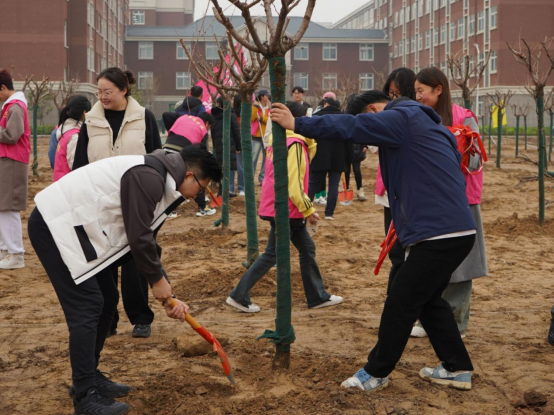 活动现场,全体师生热情高涨,大家齐心协力,扶植树苗、挥锹铲土、培实树根、浇水育苗,每个环节都做得认真细致。经过数小时的辛勤劳动,一株株树苗迎风伫立,为校园增添了无尽的生机与活力。