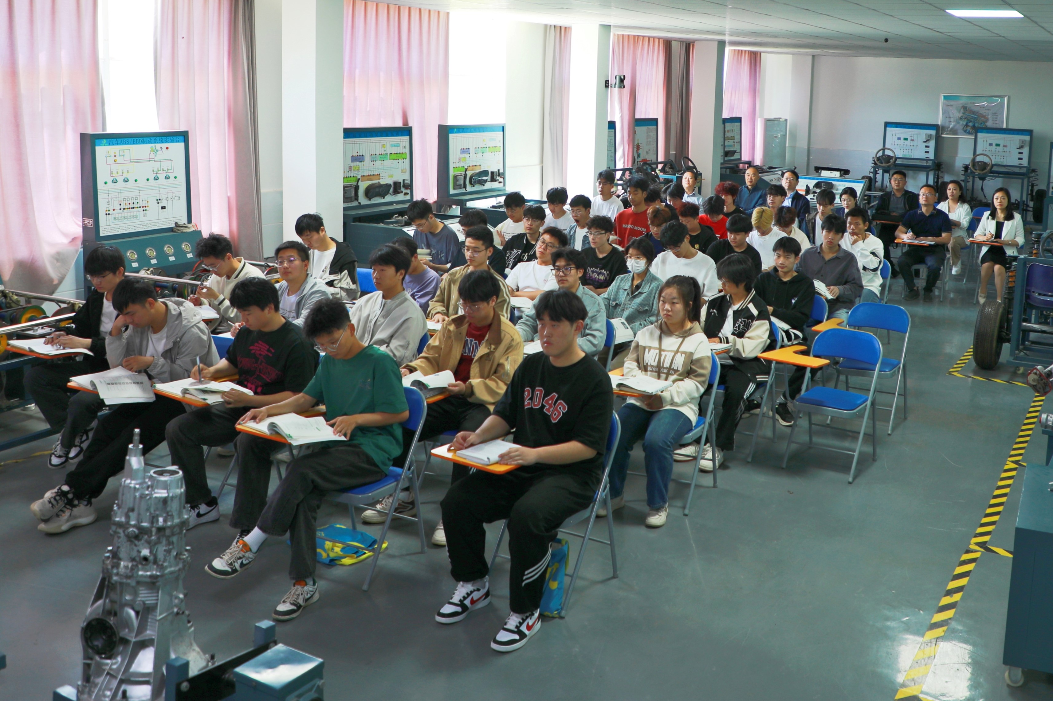 在机电学院汽车专业课堂,闫俊山一行旁听了师晓老师《新能源汽车底盘技术》课程,了解和掌握我校汽车专业的教学情况,为新能源与智能汽车学院的成立开展更加充分的调研论证。