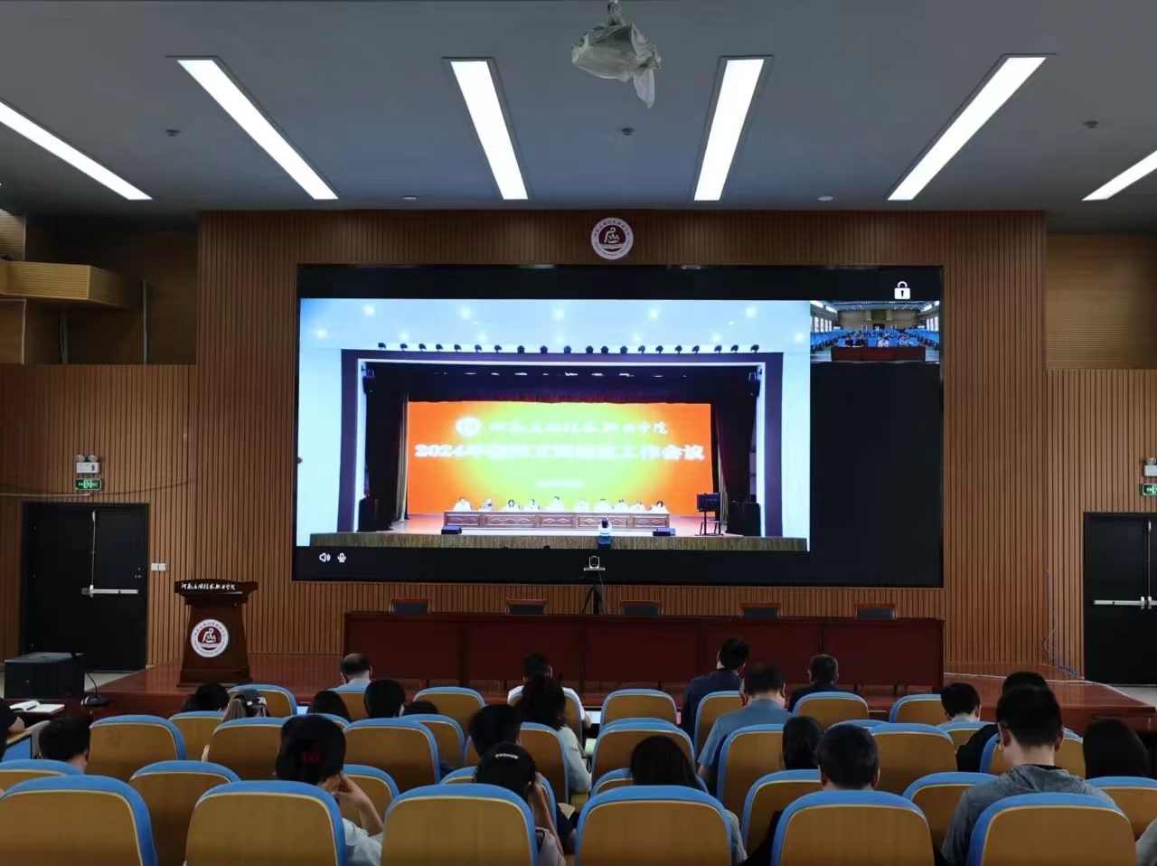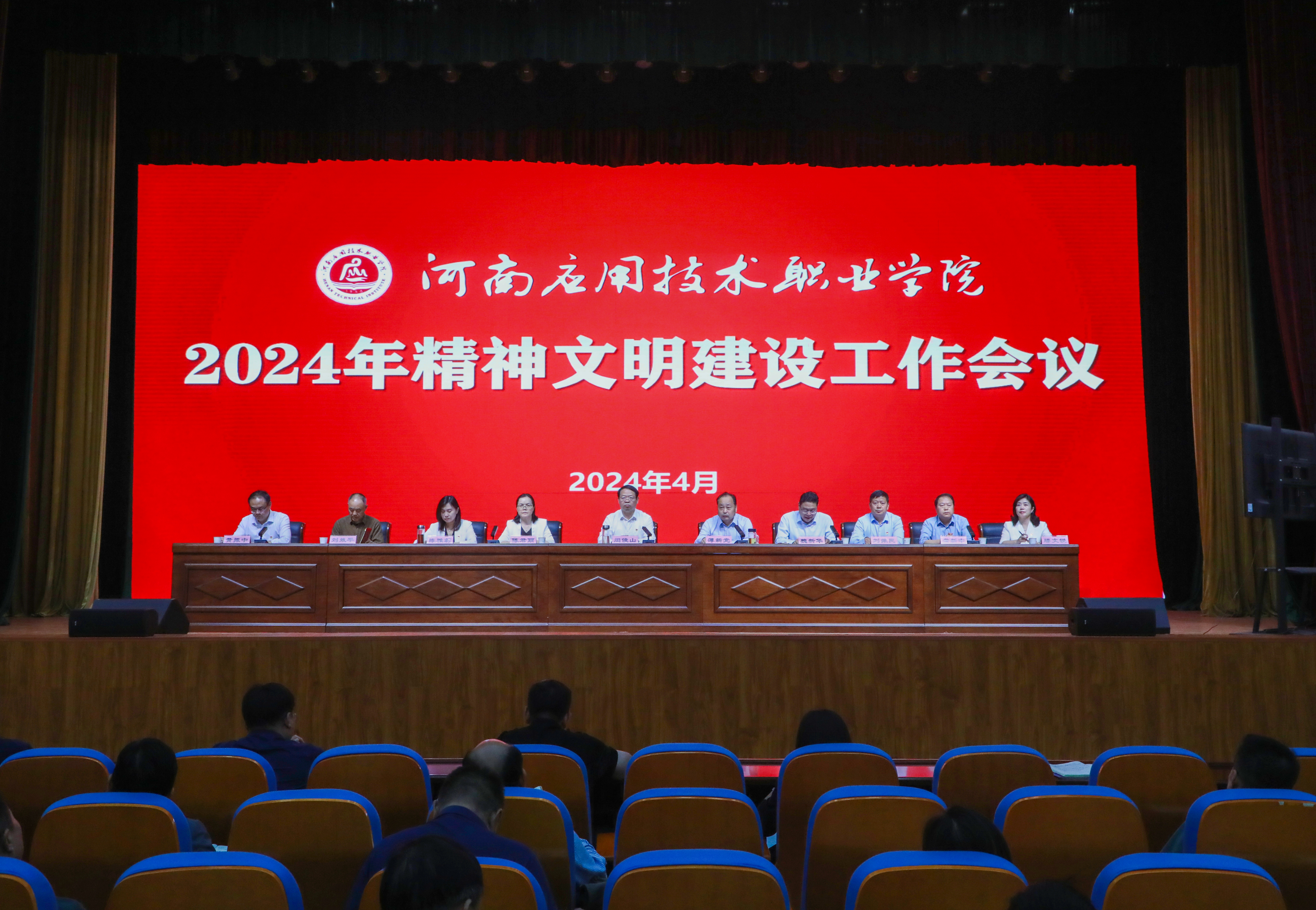4月28日下午,我校在学生活动中心召开2024年精神文明建设工作会议。学校全体党委委员出席会议,中层及以上干部、各部门精神文明建设工作专员参加会议。会议由学校党委副书记、校长薄新党主持。