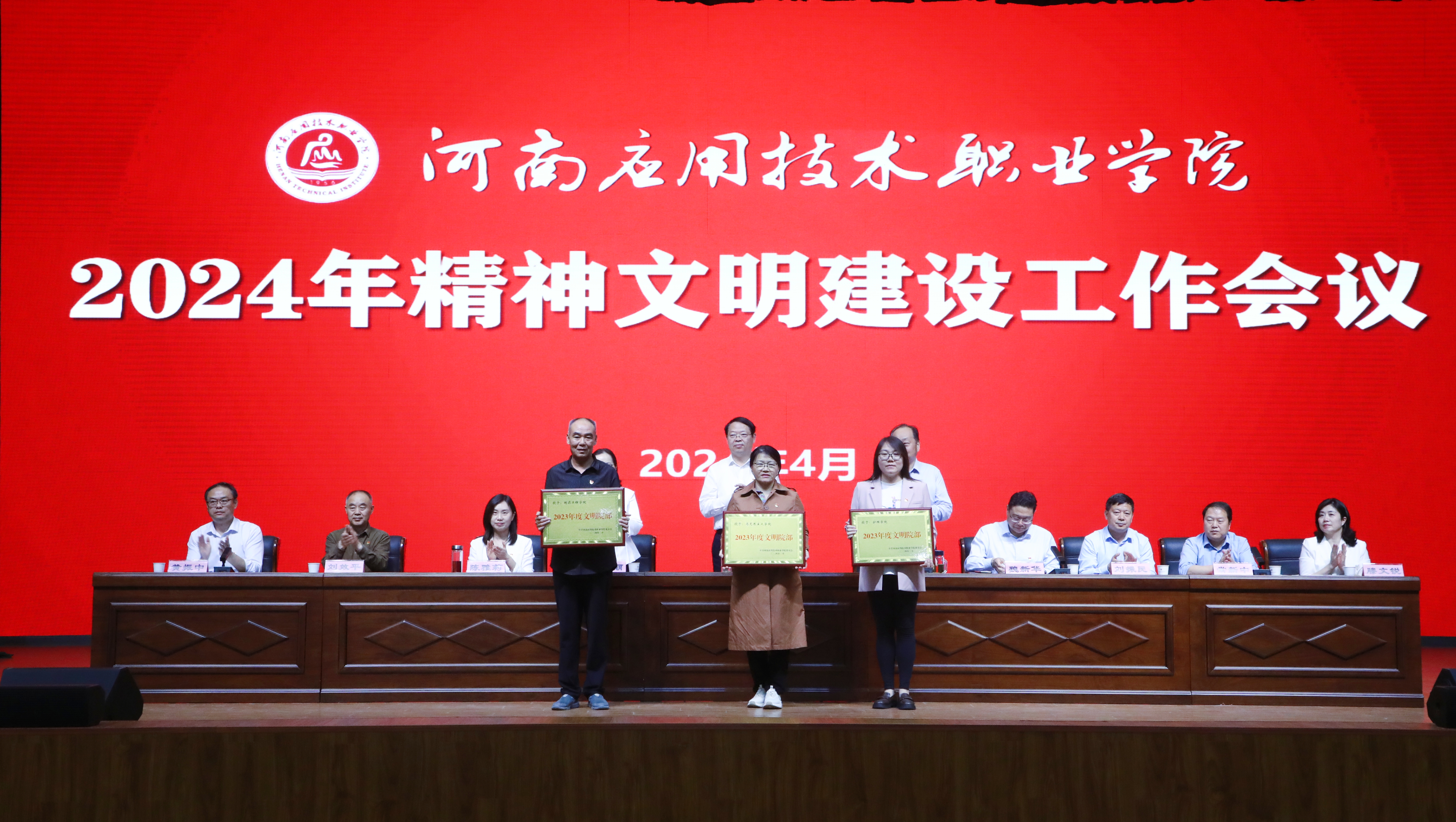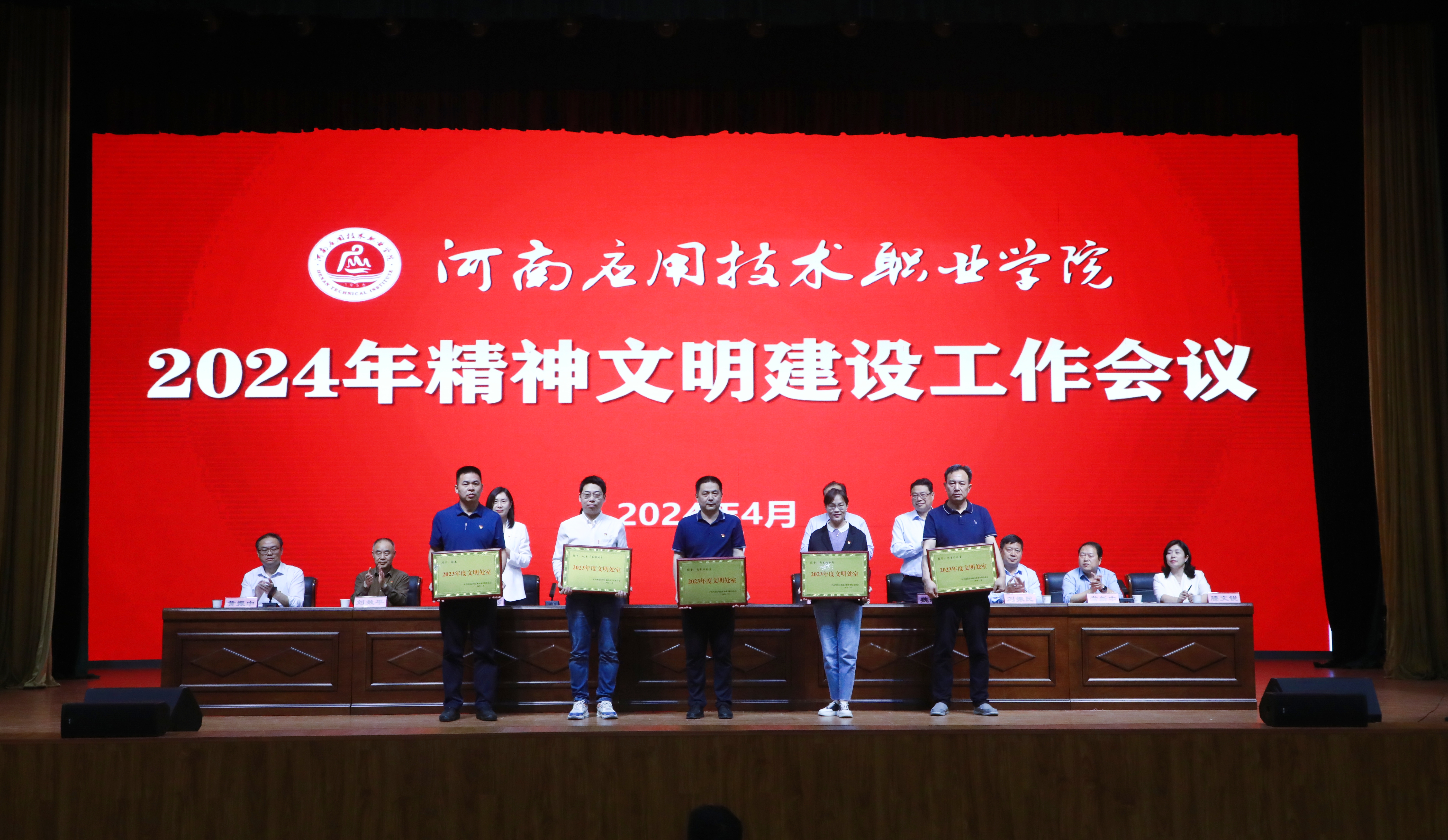 会上,党委委员、副校长魏新华宣读了我校《关于表彰2023年度“文明处室”“文明院部”“文明职工”“文明网民”“优秀志愿者”“文明食堂”的决定》,校领导为“文明处室”“文明院部”进行现场颁奖。