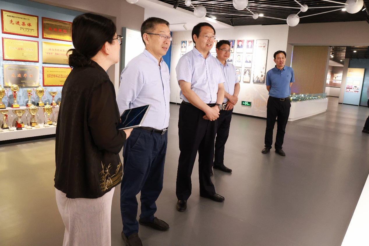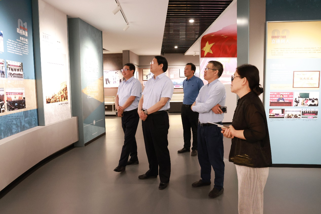 在参观校史馆时,闫俊山结合校史馆展陈内容简要介绍了我校的发展历程、办学特色和学校改革发展取得的成绩。他指出,学校一直以来高度重视人才培养和学科建设,不断结合地方产业结构优化教学内容,强化师资队伍、搭建校企合作平台,着力培养高素质技术技能型人才。目前,学校各项事业呈现良好态势。希望双方进一步深化交流合作,共同探索职业院校高质量发展内涵,互鉴共赢。