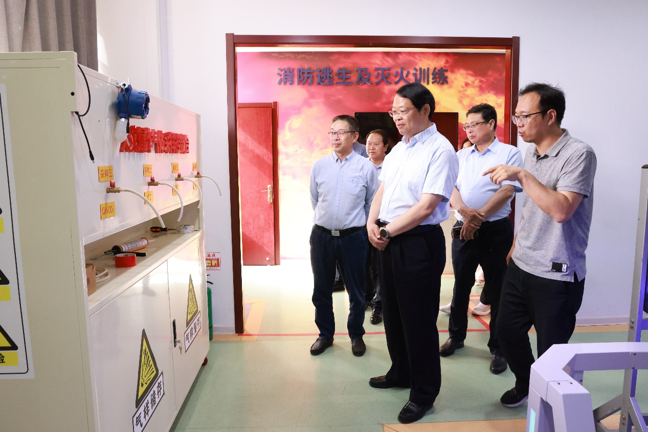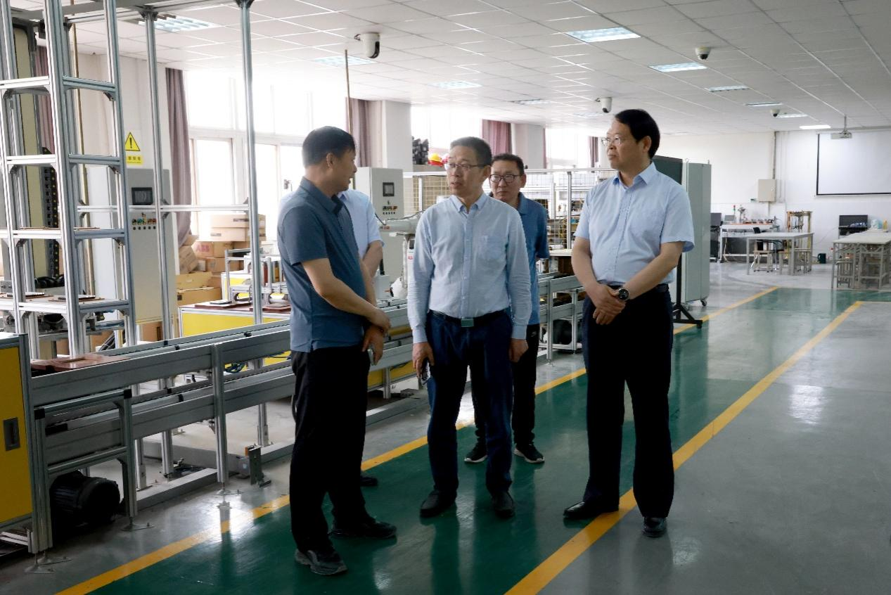 闫俊山带领郭国侠参观了学校实训教学场所,郭国侠详细询问了学校实验实训上课情况,重点了解学校在教育教学、专业建设和实训室管理等方面的经验和做法。同时,双方就产教融合、学生管理、招生就业等内容进行了交流探讨。