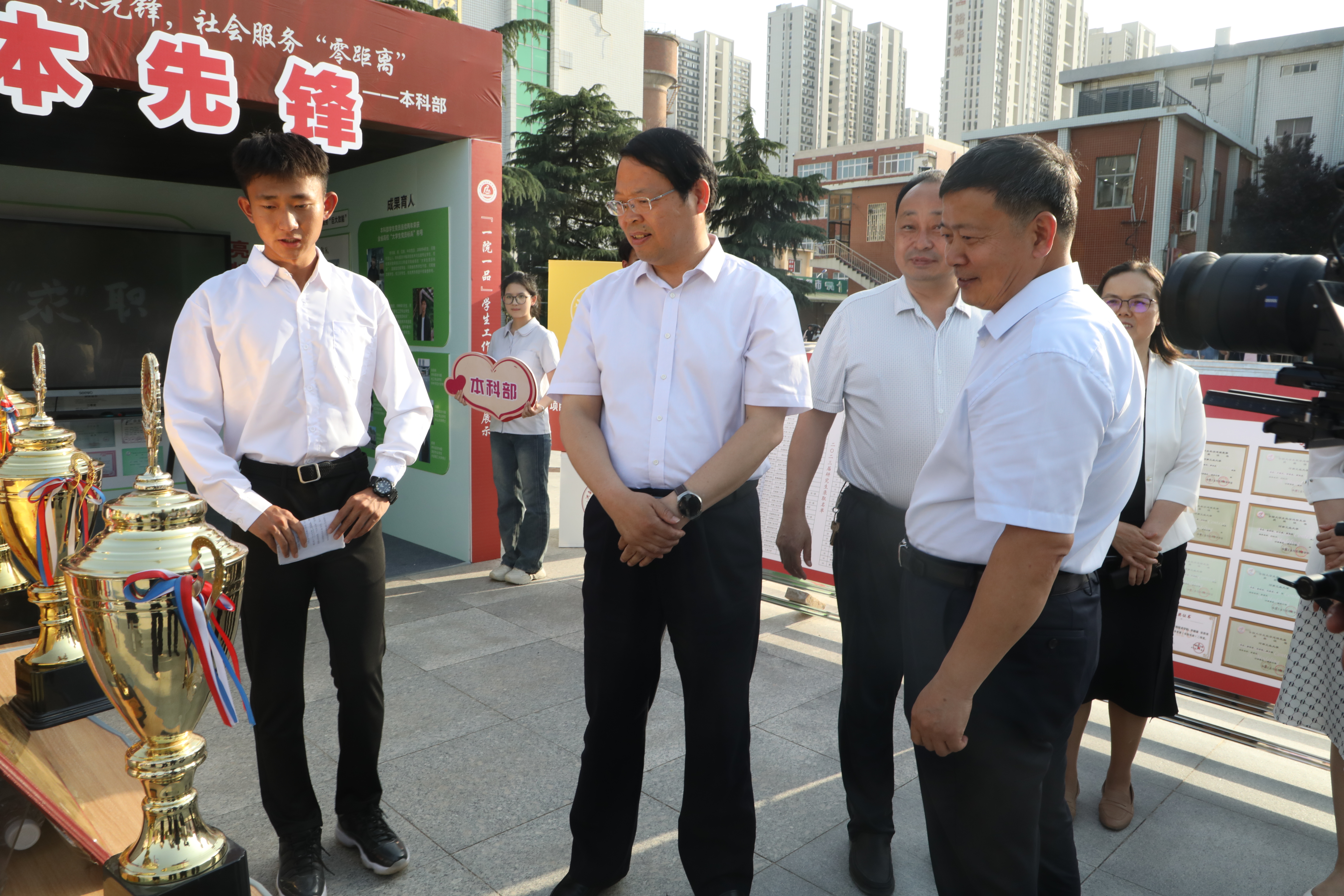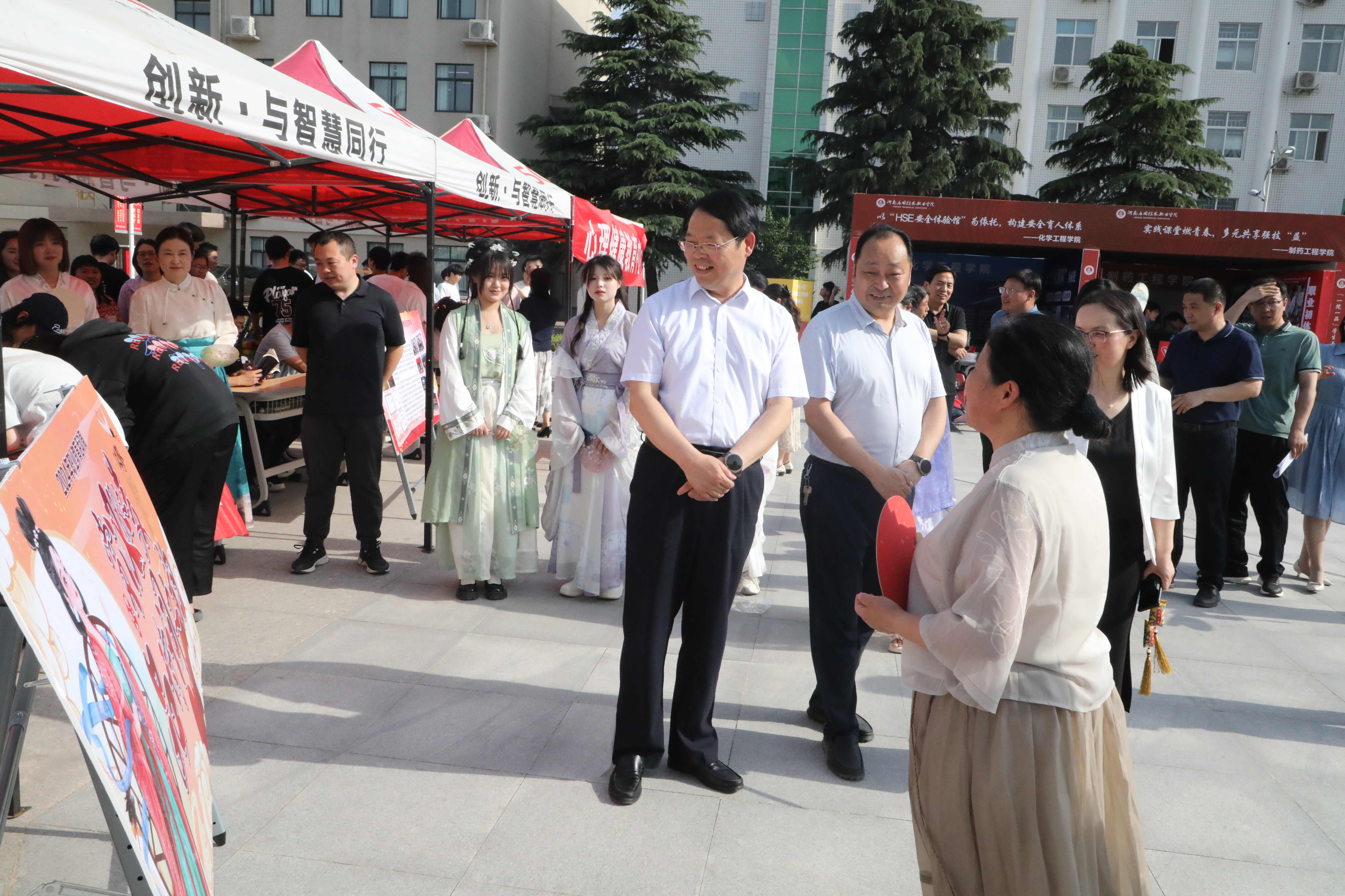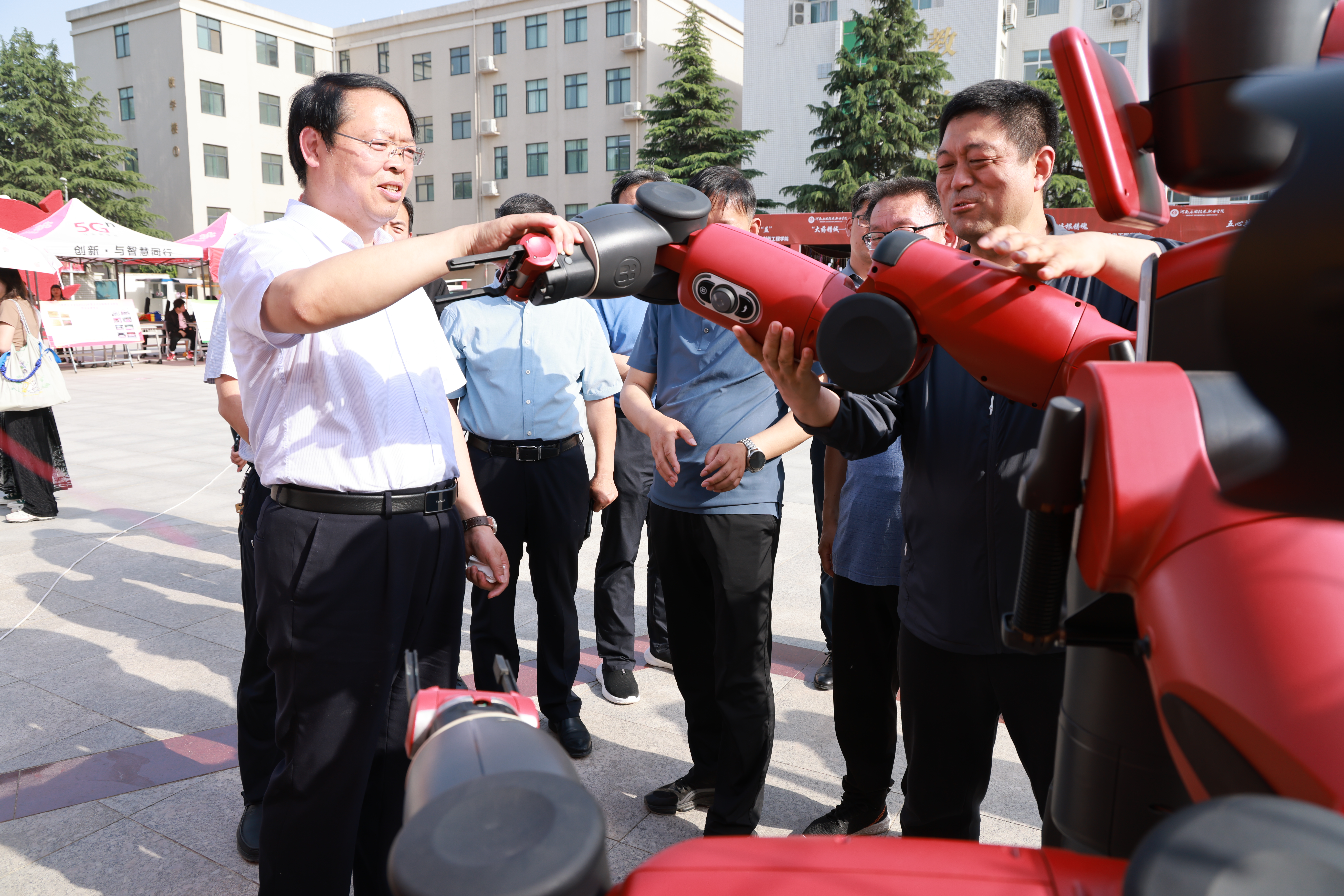启动仪式结束后,学校领导和教师代表在郑州校区北广场,参观了学校职业教育成果展示。