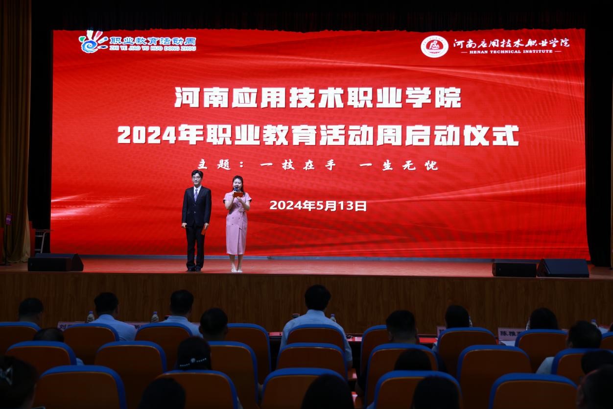 工匠筑梦,技能生花。为深入学习贯彻习近平总书记关于职业教育的重要指示和全国职业教育大会精神,传播职业教育正能量、好声音、新形象,5月13日下午,以“一技在手,一生无忧”为主题的河南应用技术职业学院2024年职业教育活动周启动仪式在学生活动中心隆重举行。全体在郑党委委员出席,各教学院部党政负责人、教师代表和学生代表参加启动仪式。