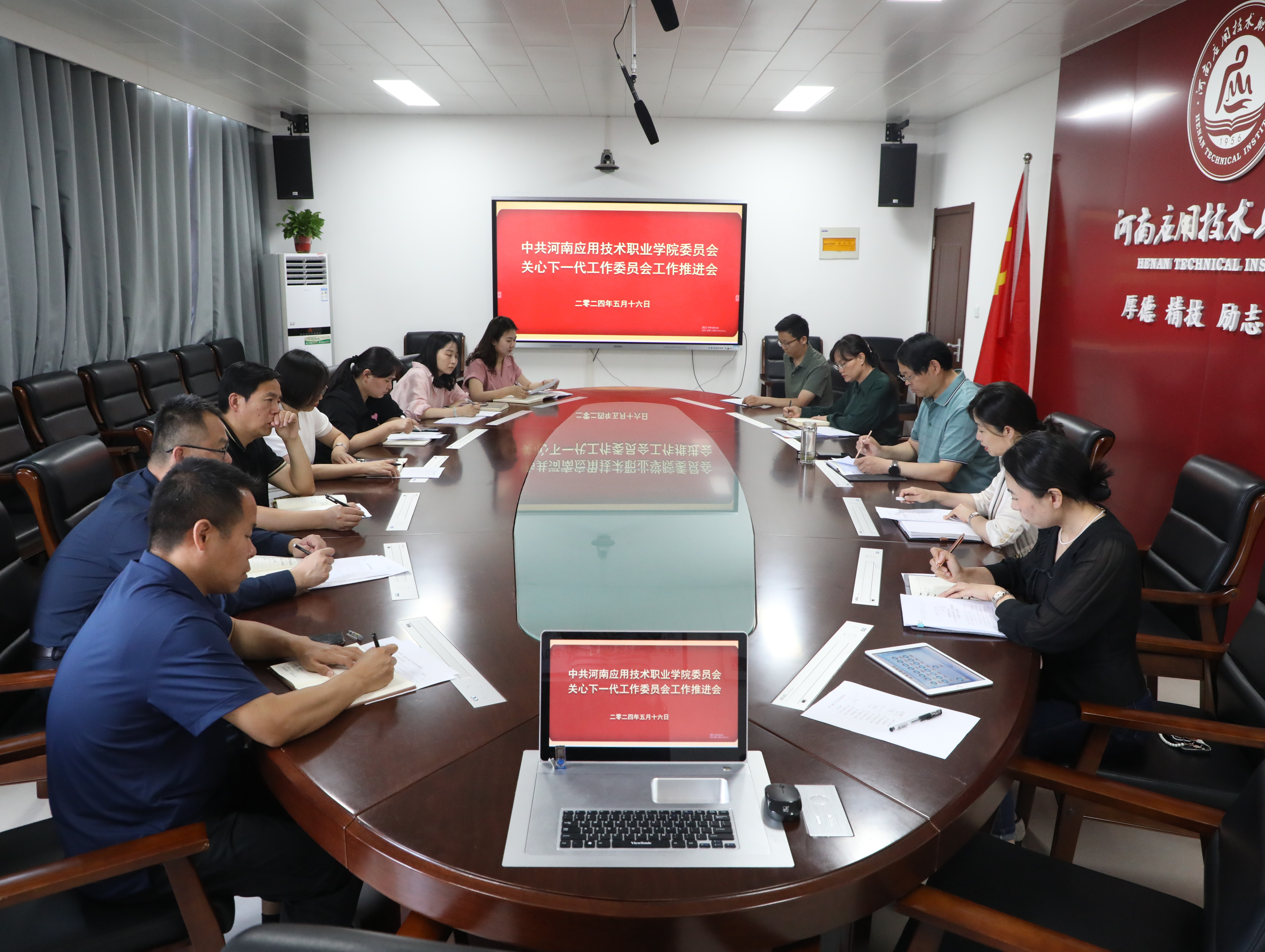 5月16日上午,我校关心下一代工作委员会(以下简称“关工委”)工作推进会在郑州、开封两校区同步召开。校党委书记、关工委主任闫俊山,党委委员、关工委秘书长滕文锐、各二级关工委主任、关工委“达标创优”工作专班参加会议。会议由滕文锐主持。