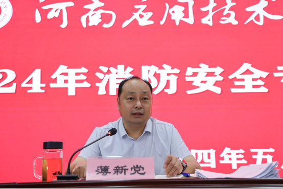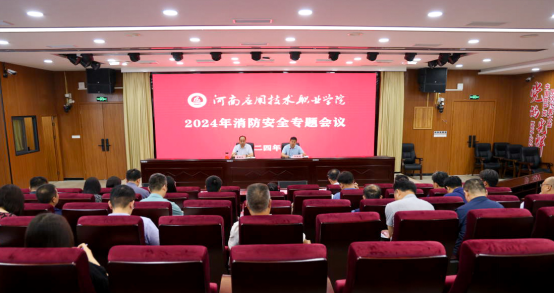 5月24日下午,我校2024年消防安全专题会议在郑州、开封两校区同步召开。校长薄新党、副校长刘振民出席会议,各职能部门、二级学院主要负责人,相关部门中层干部,三保人员代表及保卫处全体教职工参加会议。会议由刘振民主持。