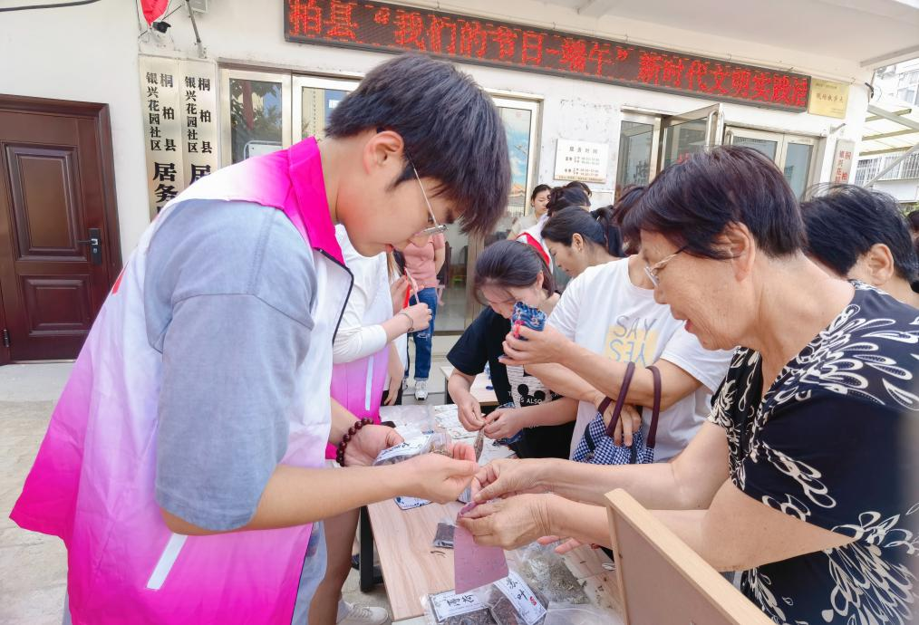 为深入贯彻落实党的二十大精神,弘扬中华优秀传统文化,助力开展社区美好环境与幸福生活共同缔造行动。6月6日下午,我校组织医药学院志愿服务团队前往桐柏县开展“传承国粹 守护健康”端午节活动,为当地群众送去了代表着健康寓意的中药香囊及端午祝福,进一步提升广大居民的健康素养。