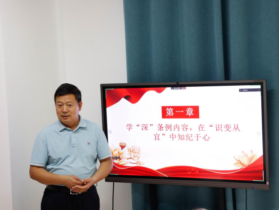刘振民以新修订《中国共产党纪律处分条例》的重大意义为切入点进行讲授,结合职业教育发展形势教育引导广大党员把牢方向重点,分别从学“深”条例内容,在“识变从宜”中知纪于心;悟“透”主旨要义,在“心知其意”中立纪于身;用“活”规定要求,在“反躬自省”中化纪于行等三个方面进行了深入浅出地讲解。他强调,党纪学习教育,是今年党建工作的一项重要政治任务,是加强党的纪律建设、推动全面从严治党向纵深发展的重要举措。广大党员干部要深刻领悟“两个确立”、坚决践行“两个维护”,增强开展党纪学习教育的使命感、责任感、紧迫感。