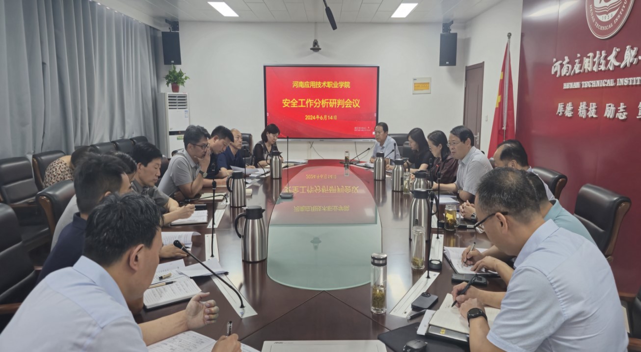 为进一步做好校园安全稳定工作,防范化解重大风险隐患,压实工作职责,强化工作措施,营造良好的校园安全环境和氛围,确保校园安全稳定,6月14日下午,我校召开2024年暑期安全工作分析研判会议。党委书记闫俊山,校长薄新党,党委副书记、工会主席陈君丽,纪委书记陈雅莉,副校长刘振民、常新中、黄振中出席会议,党委办公室、党委学生工作部、党委宣传(统战)部、院长办公室、教务处、基建处、后勤处、心理健康教育中心、开封校区综合服务中心、保卫处等相关部门负责人参加会议。