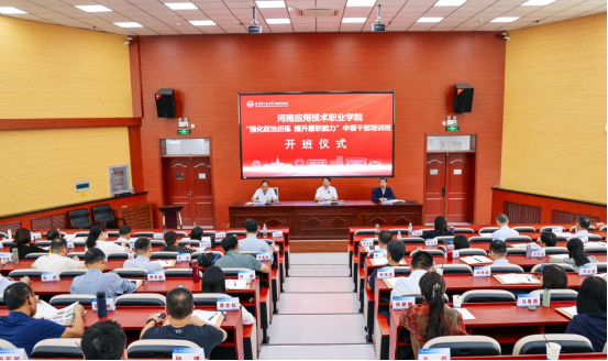开班仪式上,党委书记闫俊山对本次培训提出三点要求:一是深化思想认识,高站位把握教育培训的重要性。开展此次培训是加强干部队伍政治素质的具体行动、提升干部队伍工作能力的重要途径、促进我校事业跨越式发展的现实需要。全体学员要从政治、全局和时代的高度充分认识开展教育培训的重要意义,高度自觉地投入到这次集中培训中来。二是锤炼过硬本领,高标准提升教育培训的实效性。全体学员要通过这次培训,把想干事、会干事、敢担事、干成事作为价值追求,内化为意志品格,持之以恒加强思想淬炼、政治历练、实践锻炼、专业训练,不断提高解决实际问题的能力,锻造干事创业的过硬作风,更好肩负起时代赋予的重任。三是把握目标要求,高标准确保教育培训的严肃性。全体学员要严格遵守学习培训和廉洁自律各项规定,弘扬求真务实的良好学风,做到端正态度认真学、联系实际深入学、严守纪律专心学。闫俊山强调,要把这次培训作为新的起点和新的动力,以永不懈怠的精神状态和一往无前的奋斗姿态,积极申报国家级“双高计划”建设单位,加快推进职教本科建设步伐,为教育强省建设和职业教育建高地的火热实践作出新的更大贡献。