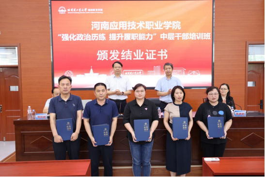 结业仪式上,哈尔滨工业大学继续教育学院副院长常永吉和我校党委书记闫俊山为学员颁发结业证书。