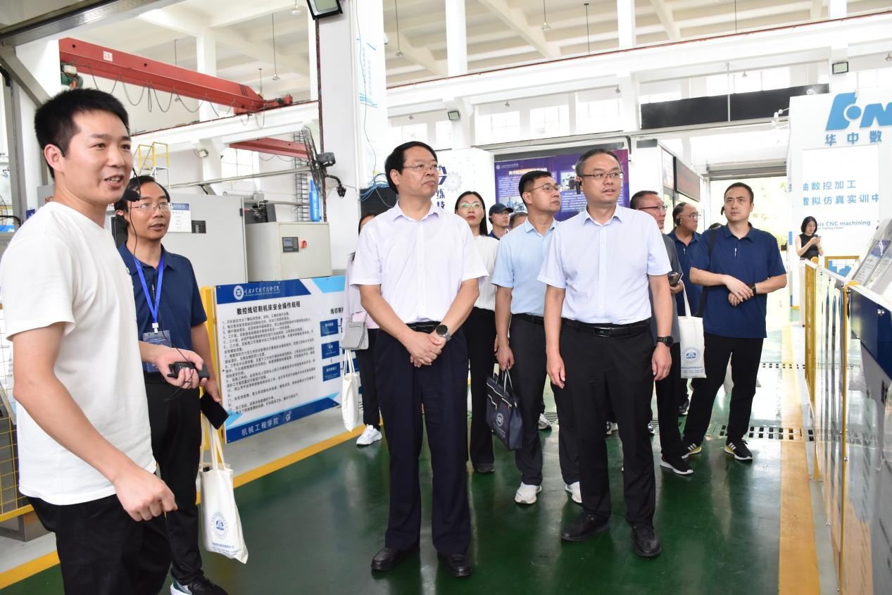 调研期间,闫俊山一行走访参观了重庆工业职业技术学院电气工程学院产教融合中心、机械工程学院现代实训中心等,全方位、多维度地了解学校的专业建设、产教融合和校园文化建设情况。