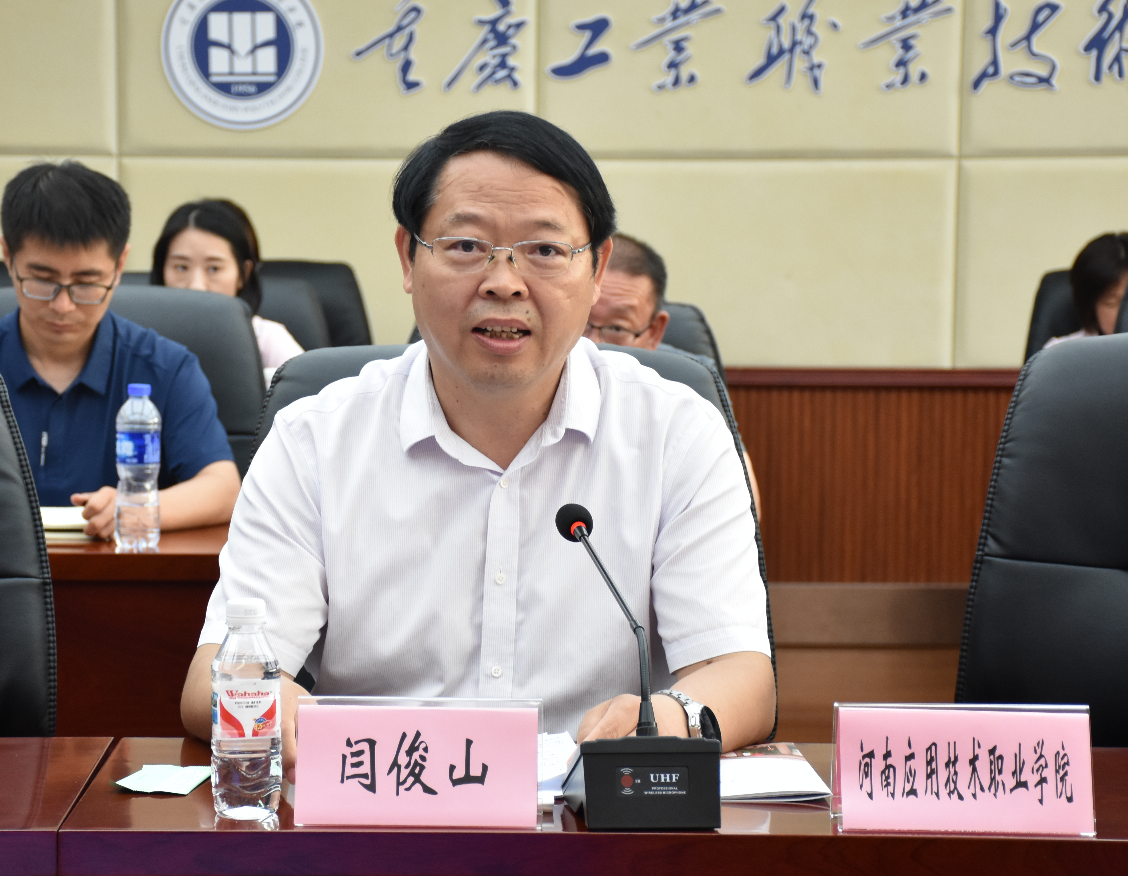闫俊山对重庆工业职业技术学院的热情接待表示感谢,并简要介绍了我校基本办学情况。闫俊山表示,重庆工业职业技术学院是首批国家级示范高职院校、国家级“双高计划”建设高水平学校建设单位,具有深厚的办学底蕴、鲜明的办学特色、显著的办学成果和卓越的育人成效。此次调研交流,为我们提供了宝贵的启示和借鉴。希望双方以此次调研为新的契机,积极建立更加紧密的合作关系,携手为社会培养更多优秀技术技能型人才,为职业教育事业的繁荣发展贡献更多智慧和力量。