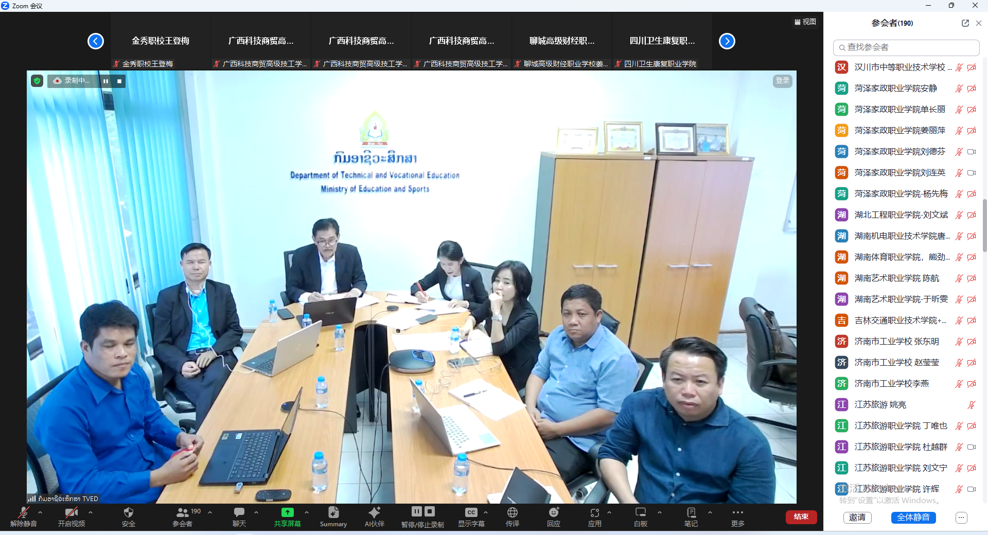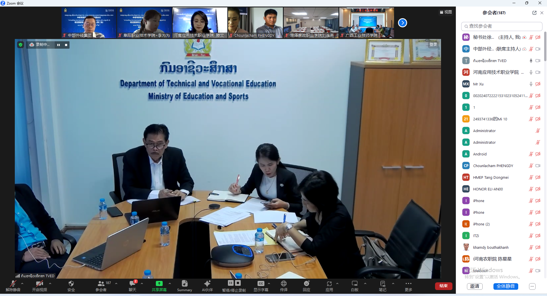 8月1日,我校副校长滕文锐应武汉中部对外经济技术合作集团有限公司邀请,主持“老挝国家职业标准共建互认(第二批)及应用推广项目”中老专家技术指导与沟通会议。本次会议通过 ZOOM 线上会议举行,参加本次会议的领导有老挝教育体育部技术与职业教育司的副司长赛康·潘塔翁等8位官员,老挝发展煤矿公司环境恢复与可持续农业综合农业学习中心经理西西赛·凯拉斯等4位老挝技术专家,天津职业技术师范大学党委副书记、校长郑清春等3位中国专家,中部外经集团董事长兼总经理李军及来自中国50多所立项建设单位分管校领导、负责标准撰写工作的院系领导、专家和骨干教师。